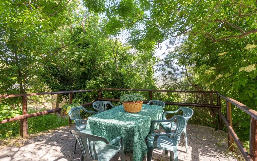 "Casa Maja", 5-værelse-halvt dobbelthus 115 m2 på 2 etager. Hensigtsmæssig og rustikt indrettet: stue med åben kamin og TV. Udgang til terrasse. Spisestue med spisebord. Åbent køkken (4 kogeplader, ovn, fryser). Brus/WC. Petroleum-opvarming. Overetage: (vindeltrappe) 2 værelse, alle værelser med 1 dobbeltseng. Udgang til altan. 1 værelse med 2 x 2 køjesenge (80 cm). Brus/WC. Altan, terrasse, havesiddeplads. Havemøbler, altanmøbler, grill, liggestole (4). Panoramaudsigt. Til benyttelse: højstol, barneseng. Bemærk venligst: velegnet for familier. Privat indgang. IT069075C292RHJTYE