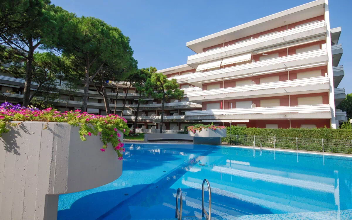 Stor flerfamiliehus "Residence La Meridiana", på 5 etager. 123 lejligheder i bygningen. I bydelen Riviera, 300 m fra bymidten af Lignano-Riviera, 13 km fra centrum af Bibione, 95 km fra bymidten af Trieste, centrale beliggenhed, 50 m fra havet, krydse vejen. Til medbenyttelse: grund (indhegnet) med planter og træer, pool (14 x 6 m, Sæsonbestemt tilgængelighed: 01.Jun. - 15.Sep.). Børnepool, terrasse. I anlægget: trådløs LAN [WLAN], elevator, cykeludlejning. Offentlige parkeringspladser på vejen. Indkøbsforretning, restaurant 300 m, busstoppested 2 km, banegård "Latisana (Milano-Venezia-Triest)" 20 km, sandstrand 50 m. Marina 500 m, golfbane (18 hul) 3.5 km.