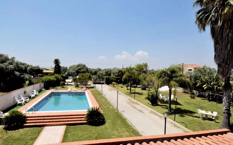 3-familiehus. 13 km fra centrum af Siracusa, 2 km fra bymidten af Floridia, rolig, solrige beliggenhed, 13 km fra havet, 20 km fra stranden. Til medbenyttelse: grund 2'500 m2 (indhegnet), have 700 m2, pool (6 x 12 m, 120 - 140 cm dyb, Sæsonbestemt tilgængelighed: 01.Maj. - 31.Okt. poolen åbningstider: 09:00-13:00 og 16:00-19:00). Udendørs brus, lysthus (9 m2), havemøbler, grill, Underholdning af poolen af ejeren/gartneren. Opvarmningen betales lokalt (01.Apr. - 30.Nov.). Lufthavntransport (ekstra). Parkeringsplads på grunden. Fødevarebutik 1.2 km, supermarked 1.5 km, restaurant 1.3 km, bar 1.2 km, busstoppested 12 km, sandstrand "Arenella" 20 km. Nærliggende attraktioner: Avola 30 km, Riserva Naturale di Pantalica 30 km, Noto 40 km. Bemærk venligst: bil anbefales. Residence med elektriske porte. Ejer bor i sammen hus.