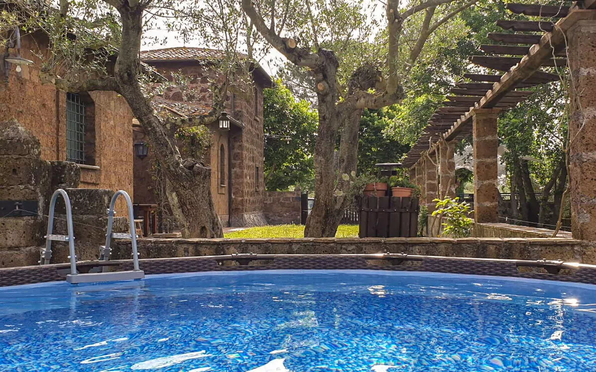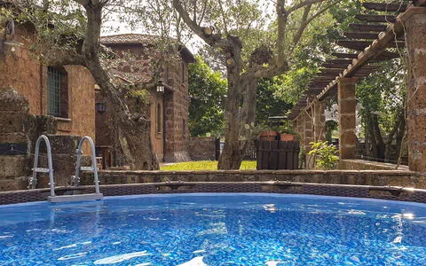 Hyggeligt, komfortabelt hus på landet "Casale Di Befania", fritstående, omgivet af træer og marker. 5 km fra bymidten af Vetralla, isoleret beliggenhed, 35 km fra havet, 15 km fra søen. Til medbenyttelse: grund 3 ha. Til alene benyttelse: have 700 m2 (indhegnet), pool (oppsted svømmebassin) rund (3,66 m diameter, 100 - 100 cm dyb, Sæsonbestemt tilgængelighed: 01.Jun. - 01.Okt.). Udendørs brus, havemøbler. I huset: massage (ekstra). Tilkørsel (100 m natursti). Parkeringsplads på grunden. Fødevarebutik 5 km, supermarked 5 km, restaurant 5 km, busstoppested 3 km, varmtvandsbad "Terme dei Papi" 17 km, havet Bracciano/Bolsena 35 km. Nærliggende attraktioner: Viterbo 18 km, Sutri 20 km, Tarquinia 28 km. Bemærk venligst: bil anbefales. Ejeren accepterer ikke nogen ungdomsgrupper. Vandhanen har ingen drikkevandskvalitet.
