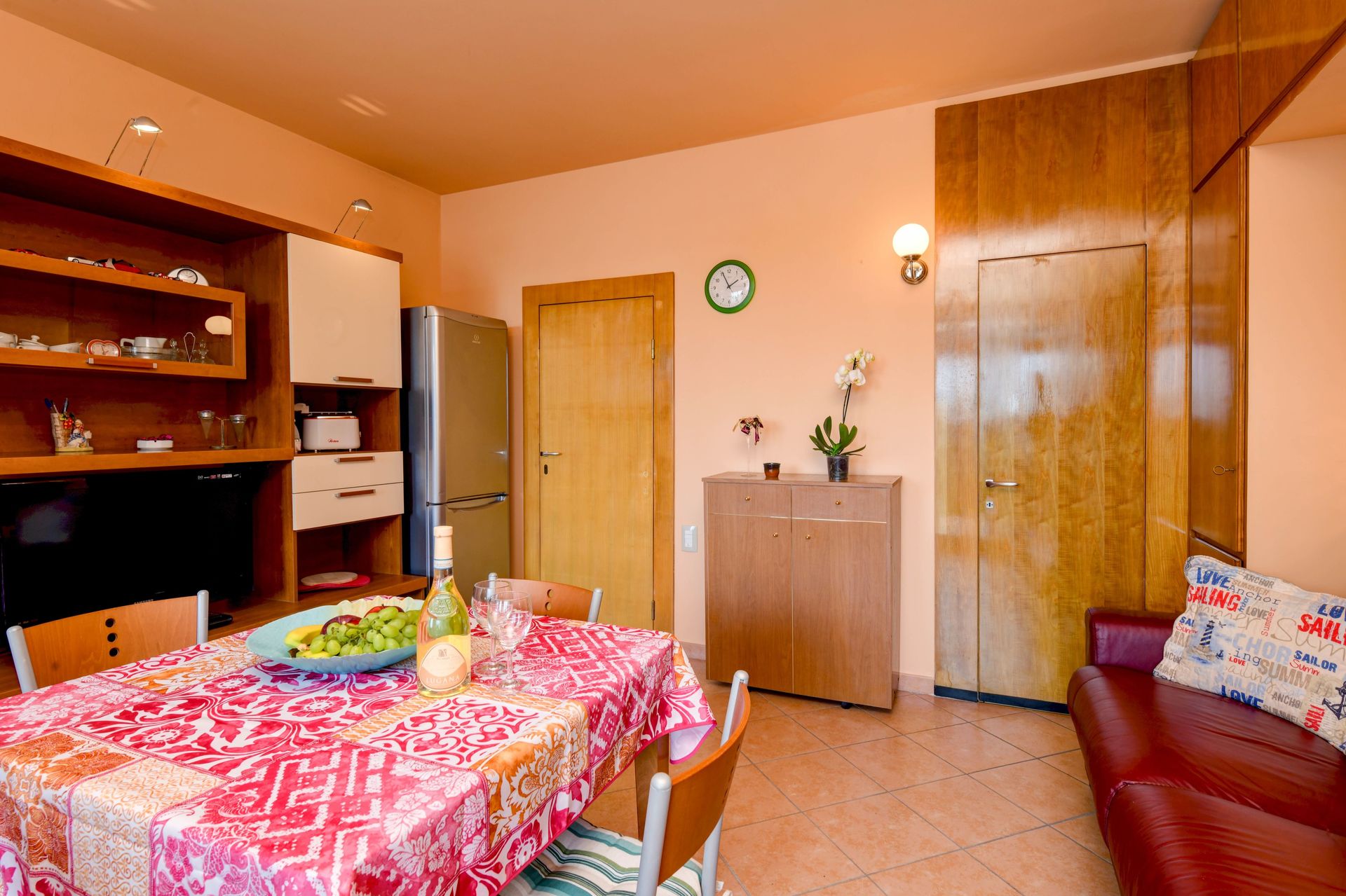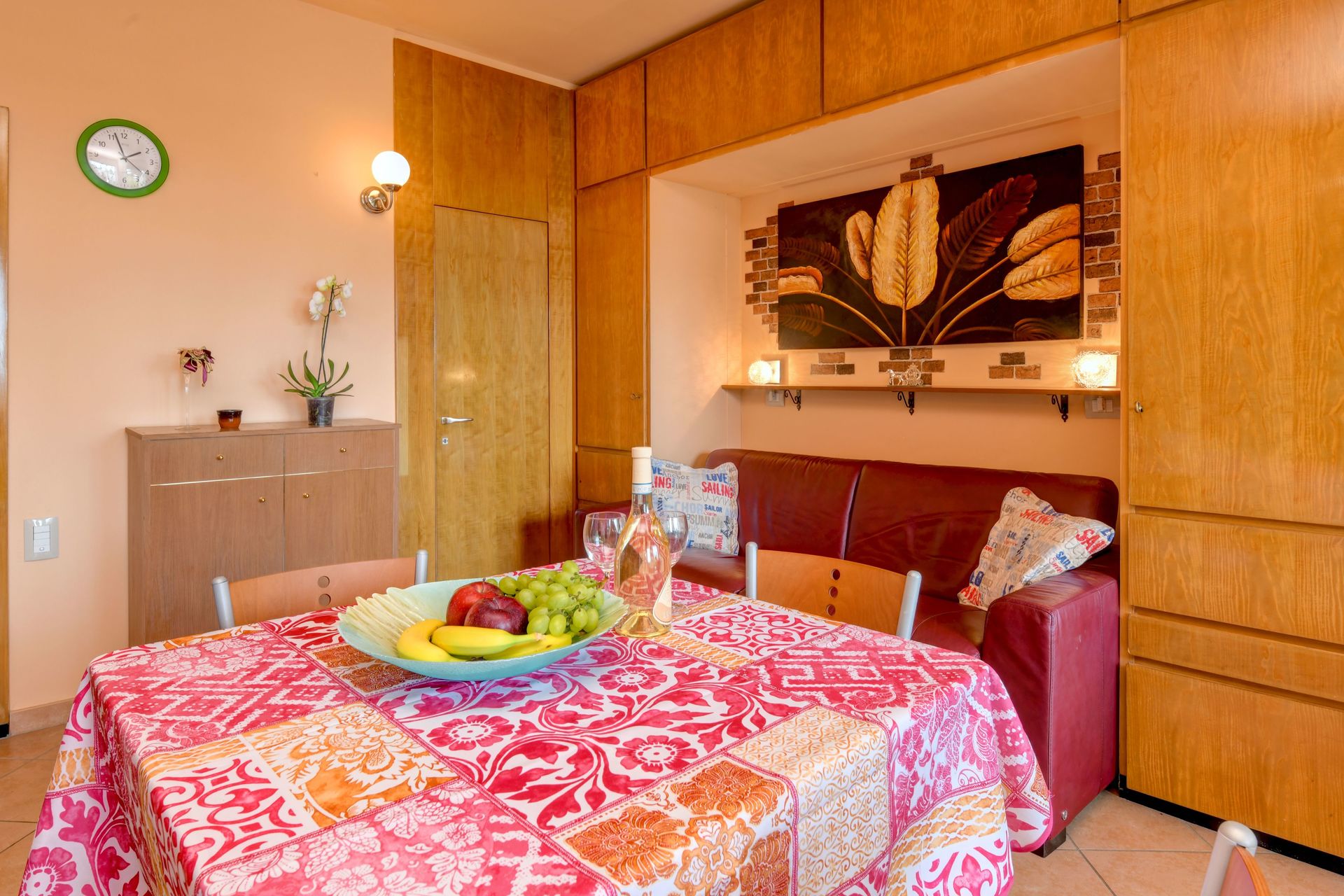 Køkken - stue: veludstyret køkken, spisebord (personer: 4), køleskab, fryser, mikroovn, kogeplader, ovn, brødrister, dobbelt sovesofa, sovesofa, WIFI internet, klimaanlæg, høj stol, tv, udgang til balkon.