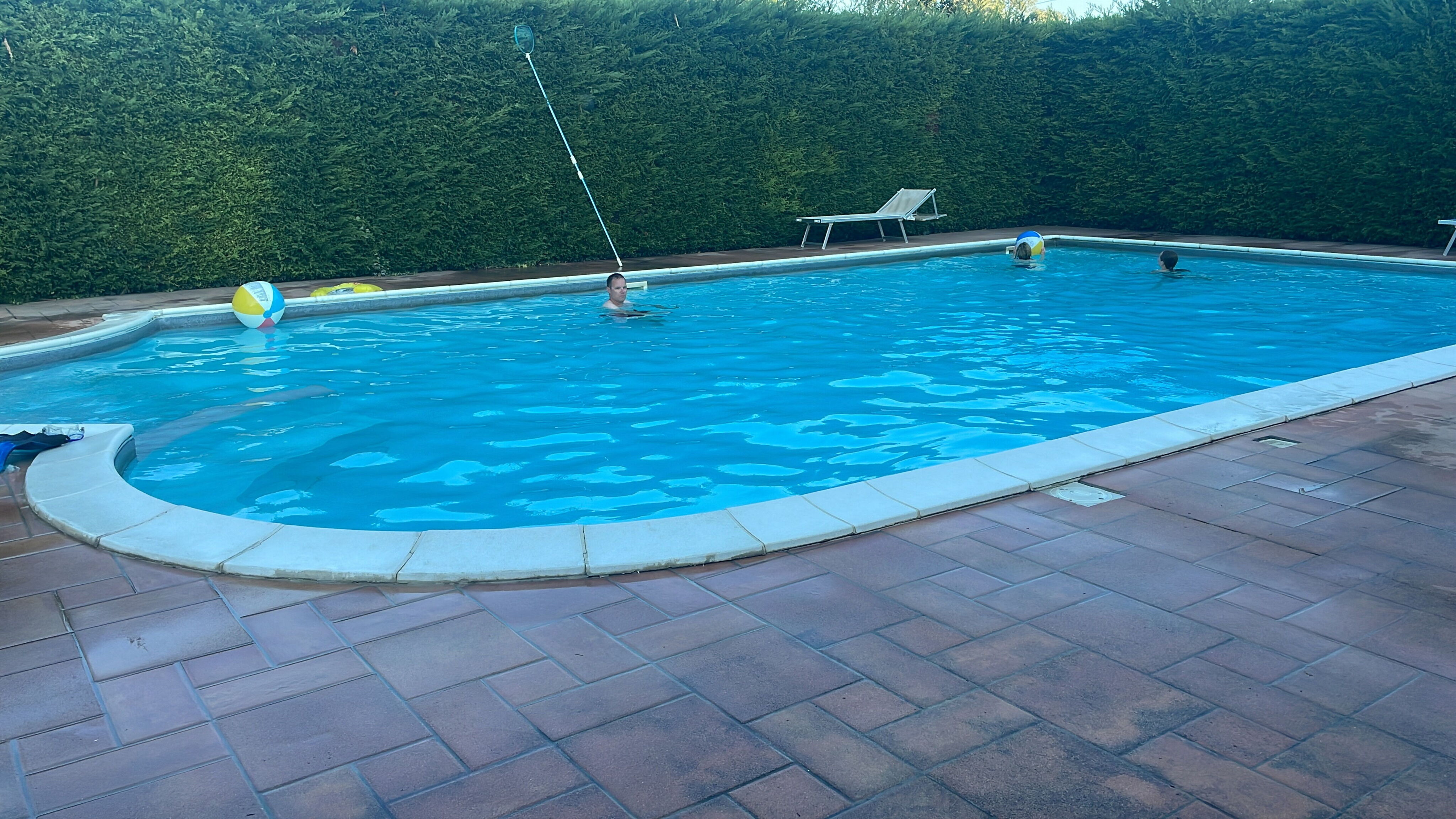 Haven på 5.000 kvadratmeter er anlagt med græsplæne og træer og tilbyder rigeligt plads til solbadning og udendørsaktiviteter. Havemøbler er til rådighed, og der er et grillområde til udendørs spisning. En udendørs bruser befinder sig på ejendommen. Den delte svømmepøl måler 14 x 7 meter med en dybde på 140 cm og er tilgængelig fra 15. maj til 15. september; poolen ligger cirka 300 meter fra villaen. Bemærk at badehætter skal bæres ved brug af poolen.
