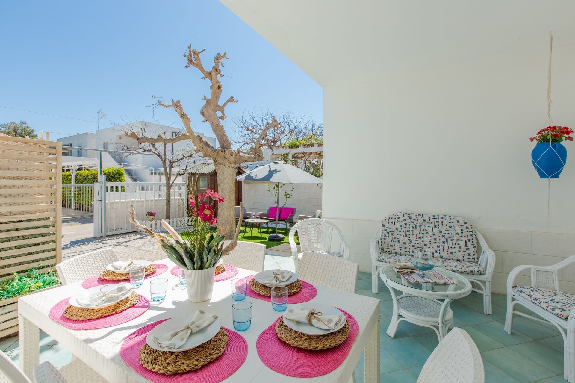 Når I ankommer, vil I blive budt velkommen af ejeren eller repræsentanten og I vil finde en skøn ren og velholdt ejendom ideel til en rolig ferie i Apulien. Til jeres store nydelse vil I finde en privat have, hvor I kan køle ned og nyde en kold drik efter en hektisk dag med shopping.Den store gevinst ved at leje en feriebolig i stedet for flere hotelværelser er muligheden for at slappe af med familie og venner efter en travl dag. Nyd en middag sammen akkompagneret med lidt lokal vin for at afslutte dagen. Til jeres store nydelse er der på ejendommen grill og gårdhave. Der er et køkken inkluderet kaffemaskine, mikroovn og køleskab, samt, , samt masser af service og bestik til op til syv personer. Hvis I foretrækker at spise 'al fresco', er der en fuldt møbleret veranda, hvor I kan nyde vejret, mens I spiser udendørs.