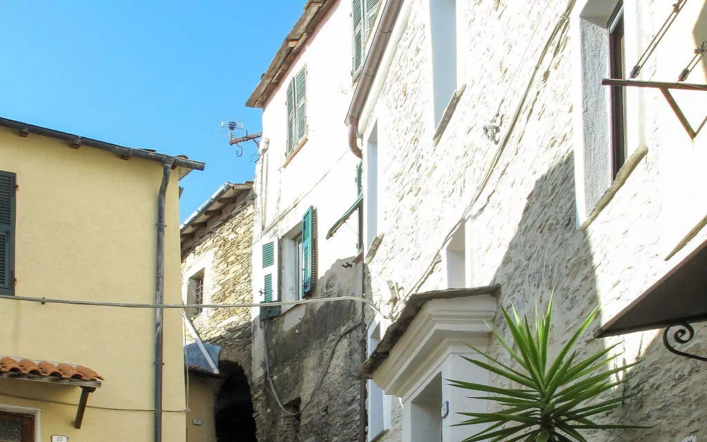 Rustic terraced house "Il Mare Laggiù". In the hamlet Borgata Revelli 500 m from the centre of Tavole, 11 km from the centre of Dolcedo, 18 km from the centre of Imperia - Porto Maurizio, in an elevated position, 18 km from the sea, 2 km from the lake, in a pedestrian area. In the house: roof terrace. 1.5 km long narrow motor access (via unmade road). 100 m footpath to the house. Public parking 100 m. Shop 6 km, supermarket 18 km, restaurant 4 km, railway station "Imperia / Porto Maurizio" 20 km, sandy beach "Imperia" 18 km, bathing lake "Laghetti Lecchiore" 2 km. Part of the house is closed and unoccupied.