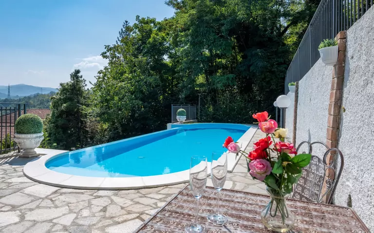 Villa "Le Rose". 5.7 km fra bymidten af Gavi, ved bykanten, 4.3 km fra centrum af Serravalle Scrivia, 35 km fra bymidten af Alessandria. Til alene benyttelse: grund 10'000 m2, velplejet have i forskellige niveauer med planter og træer, frugthave, pool (12 x 4 m, 120 cm dyb, Sæsonbestemt tilgængelighed: 15.Maj. - 30.Sep.). Terrasse, havemøbler. I huset: billiard. 80 m lang, stejl tilkørsel. Parkeringsplads (for 3 biler) ved huset. Indkøbsforretning 4.3 km, supermarked 4.3 km. Golfbane 3.4 km. Nærliggende attraktioner: Parco Acquatico Bolle Blu 10 km, Serravalle Designer Outlet 4.7 km. Ejeren accepterer ikke nogen ungdomsgrupper. Fredfyldt og roligt område. Stilhed og gode manerer er forventet.