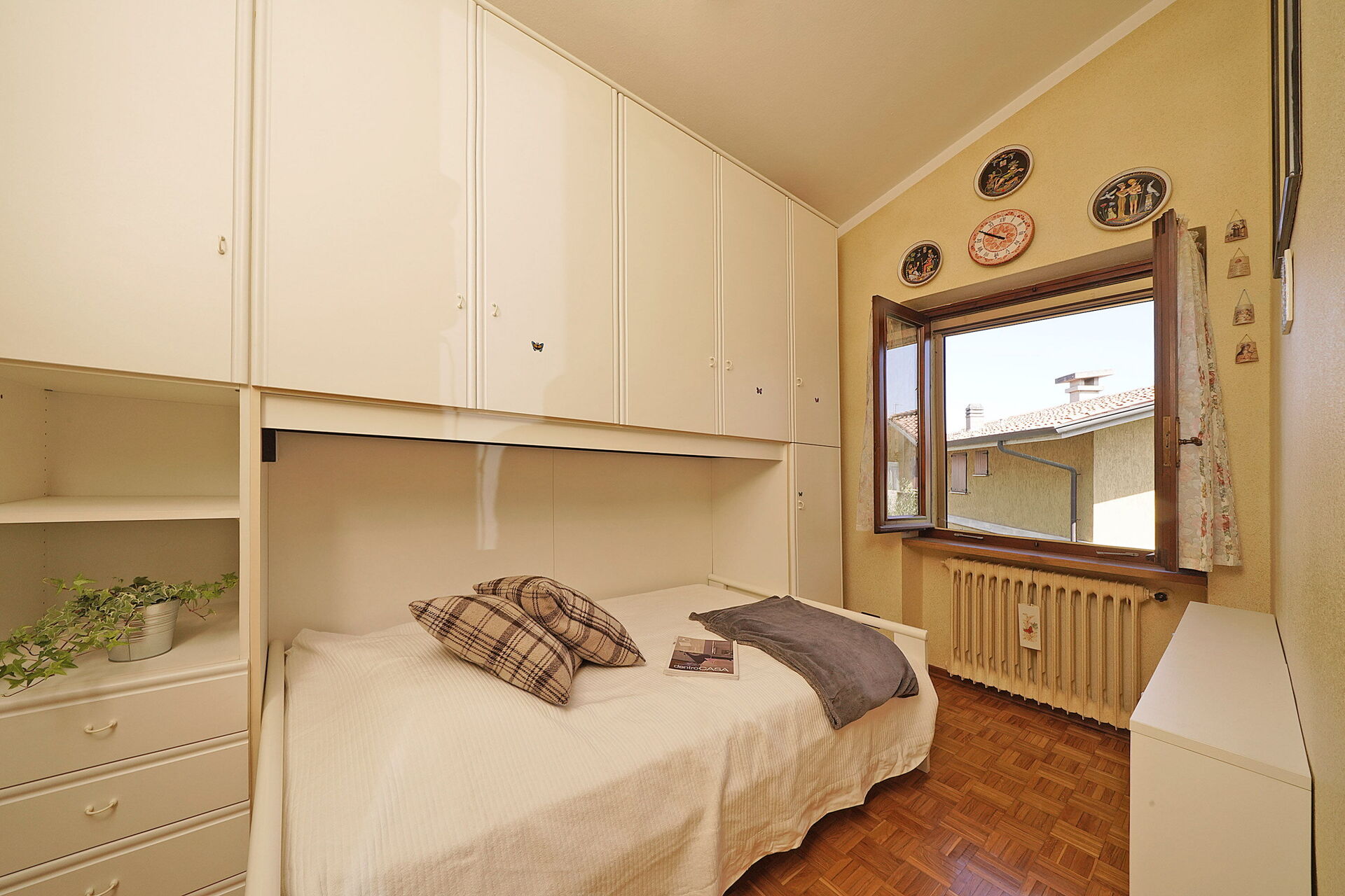 Når I ankommer, vil I møde en fin ren velholdt ejendom med udsigt over byen perfekt til behagelig ferie i Lombardy. Til jeres store nydelse vil I finde en privat have, hvor I kan køle ned og nyde en kold drik efter en travl dag med museumsbesøg.Den store gevinst ved at leje en feriebolig i stedet for flere hotelværelser er muligheden for at slappe af med familie og venner efter en travl dag. Nyd en middag sammen akkompagneret med lidt lokal vin for at afslutte dagen. Hvis I nyder at lave mad til familie og venner så er der et veludstyret køkken inkluderet mikroovn, brødrister, komfur og køleskab, samt, , samt masser af service og bestik til op til fem personer.