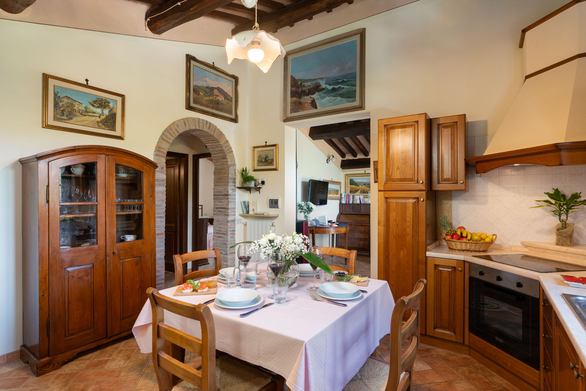 Når I ankommer, vil I blive budt velkommen af ejeren eller repræsentanten og I vil finde en dejlig ren og velholdt ejendom med udsigt over bakkerne ideel til en behagelig ferie i Toscana. Uanset hvordan I tilbringer dagene - med museumsbesøg, sightseeing, shopping eller bare ved at køre rundt på landet, så kan I køle ned med familie og venner ved poolen, når I kommer hjem, hvilket er en perfekt måde at afslutte endnu en dejlig dag på i Toscana. At nyde et måltid med venner og familie er en kæmpe del af den toskanske kultur. Benyt det velekviperede køkken til madlavning med lokale produkter, når du er på ferie. Køkkenet indeholder mikroovn, brødrister og køleskab, samt, masser af service og bestik til op til fire personer. Spis 'al fresco' som en ægte toskaner. Den fuldt møblerede veranda er det perfekte sted for at nyde sit måltid, familien og det dejlige toskanske vejr.