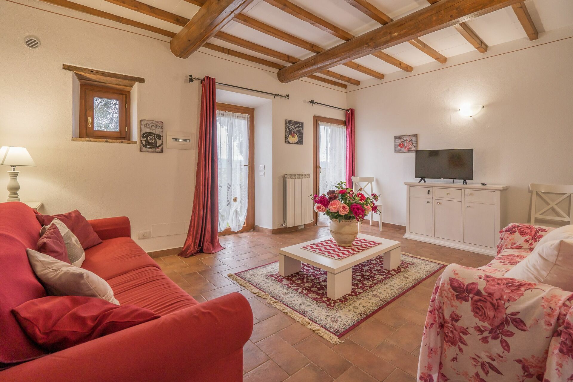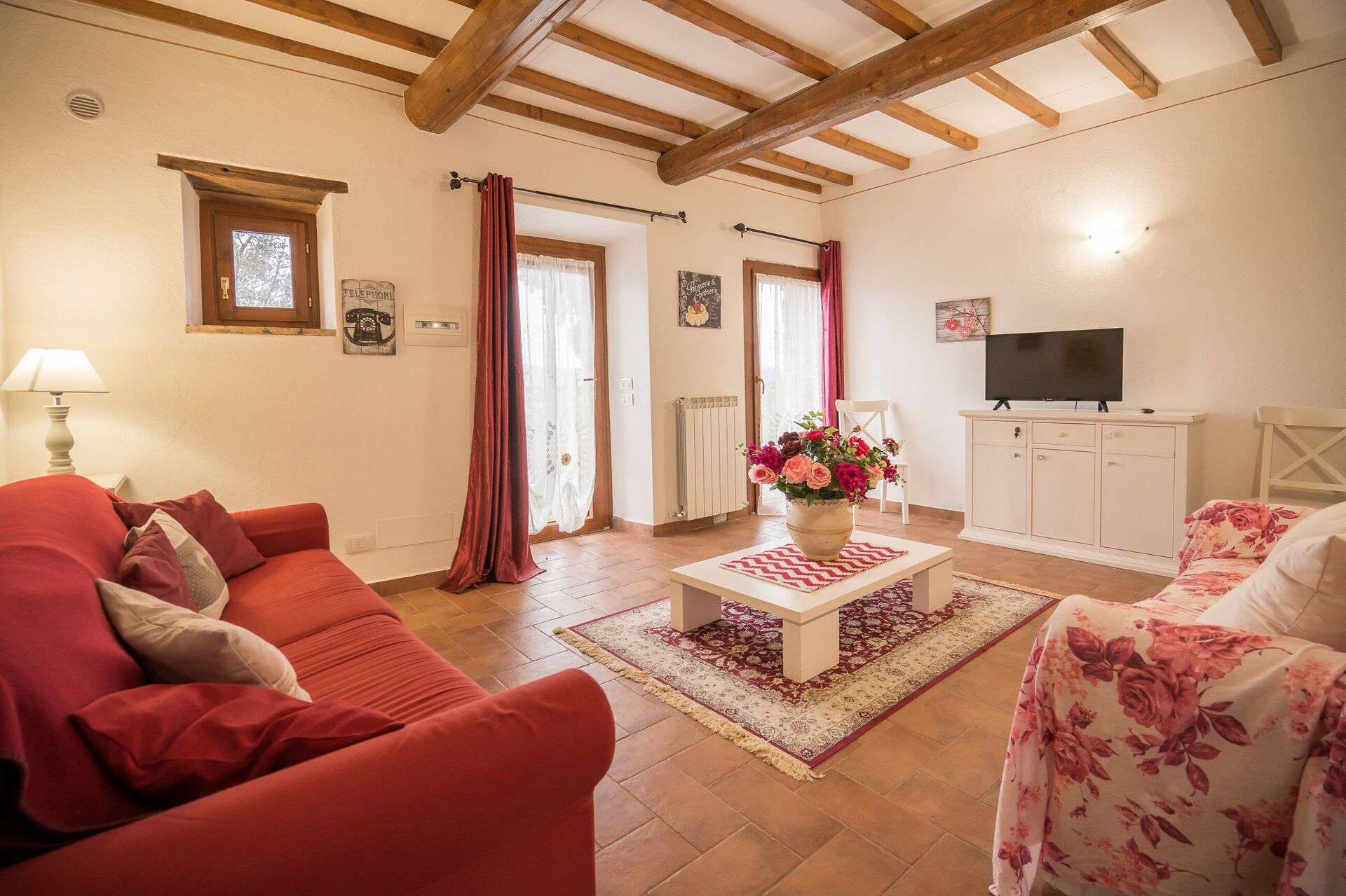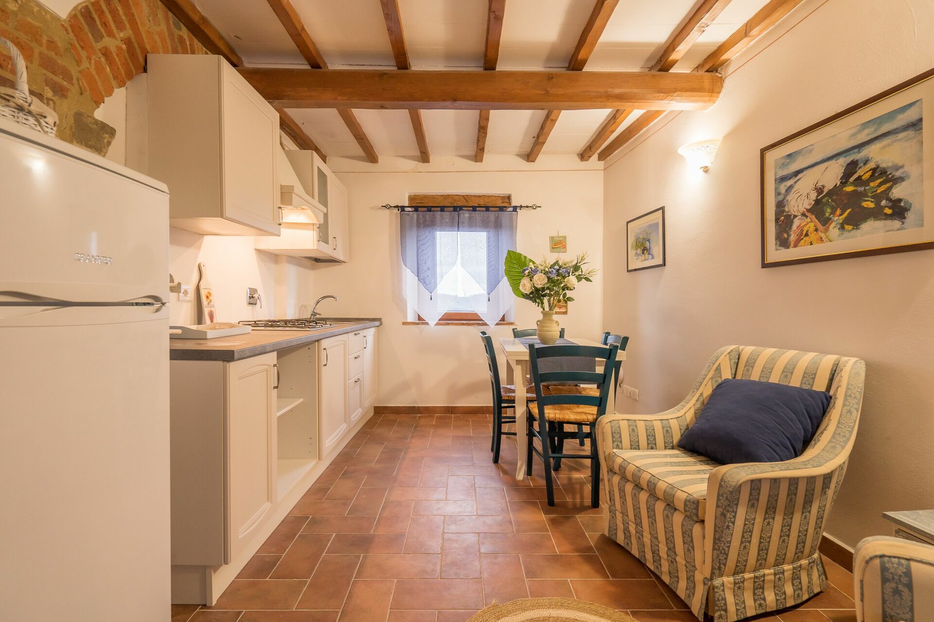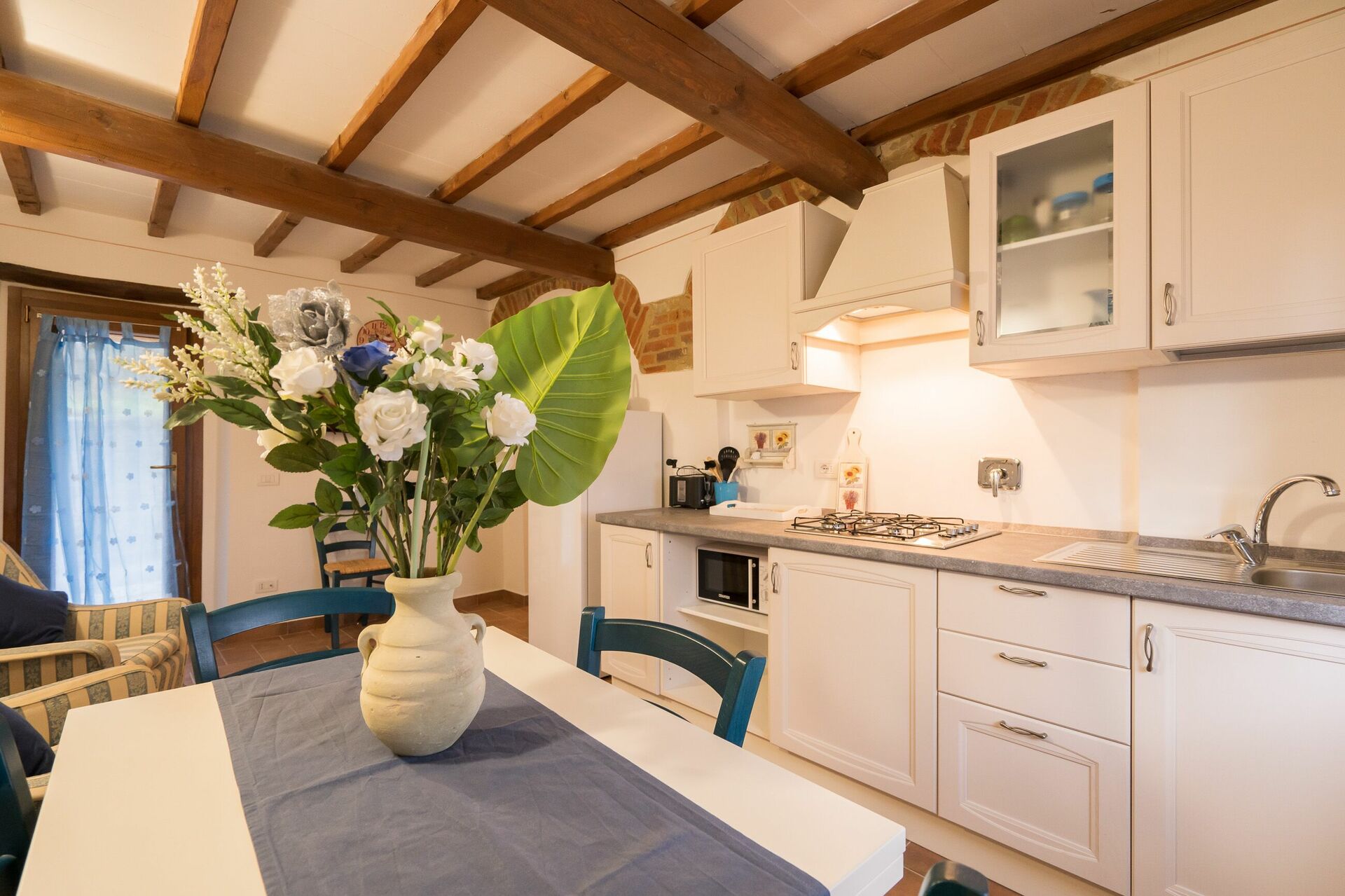 Ved ankomst vil I møde en fin ren velholdt ejendom med udsigt over bakkerne ideel til rolig ferie i Toscana. Til jeres store nydelse vil I finde en privat pool, hvor I kan køle ned, mens I nyder en dejlig kold drik efter en travl dag med shopping. At nyde et måltid med venner og familie er en stor del af den toskanske kultur. Benyt det velekviperede køkken til madlavning med lokale produkter, når du er på ferie. Køkkenet indeholder kaffemaskine, mikroovn, brødrister og køleskab, samt, masser af service og bestik til op til 22 personer. Spis 'al fresco' som en ægte toskaner. Den fuldt møblerede er det perfekte sted for at nyde sit måltid, familien og det dejlige toskanske vejr.