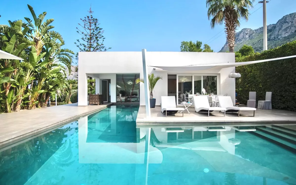 Villa "Re di Denari". 3 km fra bymidten af Terrasini, 40 km fra centrum af Palermo, solrige beliggenhed boligområde, 3 km fra havet. Til alene benyttelse: grund 3'000 m2 (indhegnet), have, pool (16 x 8 m, 120 - 350 cm dyb, Sæsonbestemt tilgængelighed: 01.Apr. - 31.Okt.). Havemøbler, grill, Underholdning af poolen af ejeren/gartneren. Opvarme kun tilgængelig fra 01.Dec. - 31.Mar.. Til afbenyttelse: cykler (2) (ekstra). Parkeringsplads på grunden. Fødevarebutik 3 km, supermarked 1.5 km, restaurant 2 km, bar 2 km, busstoppested 1.5 km, banegård "Terrasini/Cinisi" 3.5 km, sandstrand "La Priola" 3 km, stenstrand "Cala Rossa" 4 km. Nærliggende attraktioner: Borgo Parrini 13 km, Segesta Parco Archeologico 43 km, Erice 70 km, Trapani/Aliscafi per Isole Egadi 73 km, San Vito lo Capo 75 km, Saline di Marsala 85 km. Vandrestier Riserva Naturale Monte Pecoraro 15 km, Riserva Naturale dello Zingaro 46 km. Bemærk venligst: bil anbefales.