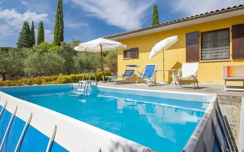 Hyggeligt bondehus "Il Sorriso", renoveret, omgivet af græsmarker, marker og vingård. 3 km fra bymidten af Certaldo, 42 km fra centrum af Firenze, 48 km fra bymidten af Siena, isoleret, solrige, høj beliggenhed, i det grønne. Til medbenyttelse: uberørt grund 16 ha, have 3'000 m2 med planter og træer, naturhave. Til alene benyttelse: have i forskellige niveauer med planter og blomster, pool (oppsted svømmebassin) (3 x 5 m, 125 cm dyb, Sæsonbestemt tilgængelighed: 29.Apr. - 02.Okt.). Terrasse, havemøbler, grill. I huset: aircondition, vaskemaskine. Parkeringsplads (overdækket) ved huset. Indkøbsforretning 3 km, restaurant 3 km, busstoppested 2 km, banegård " Certaldo" 4 km. Golfbane 25 km, tennis 5 km, ridehal 4 km. Bemærk venligst: ejer bor på sammen grund. Objoktnummer IT5250.825.1 er beliggende på samme grund.