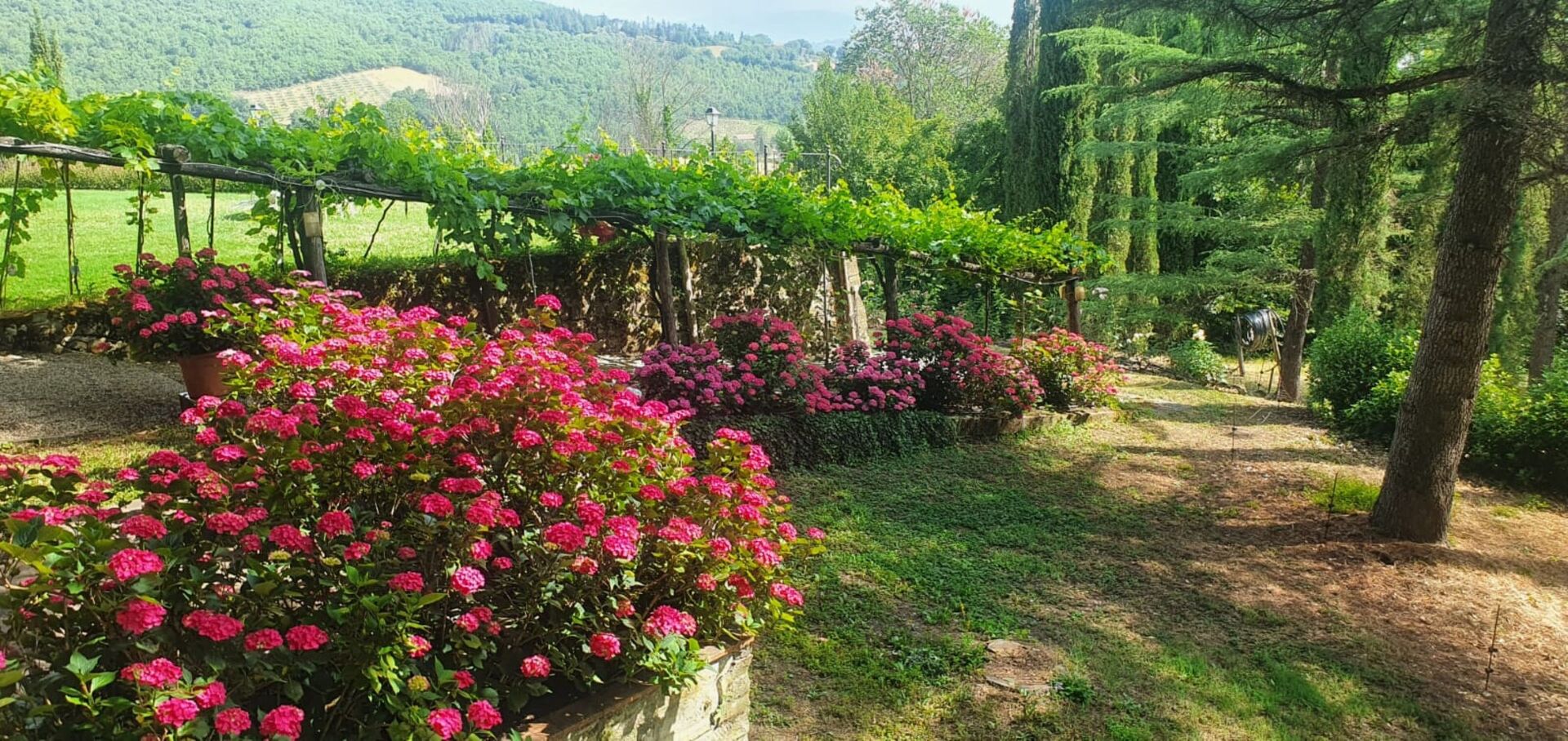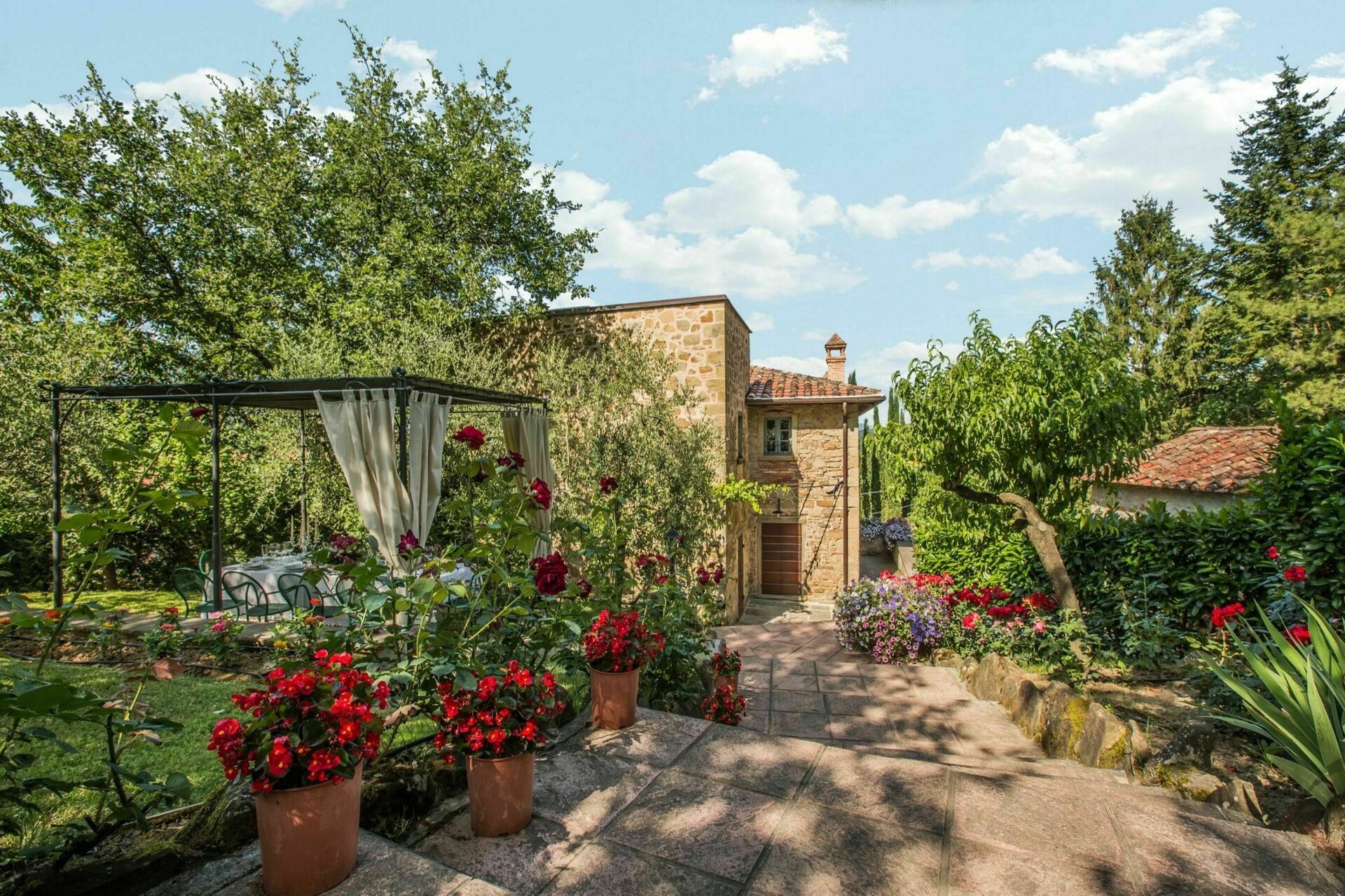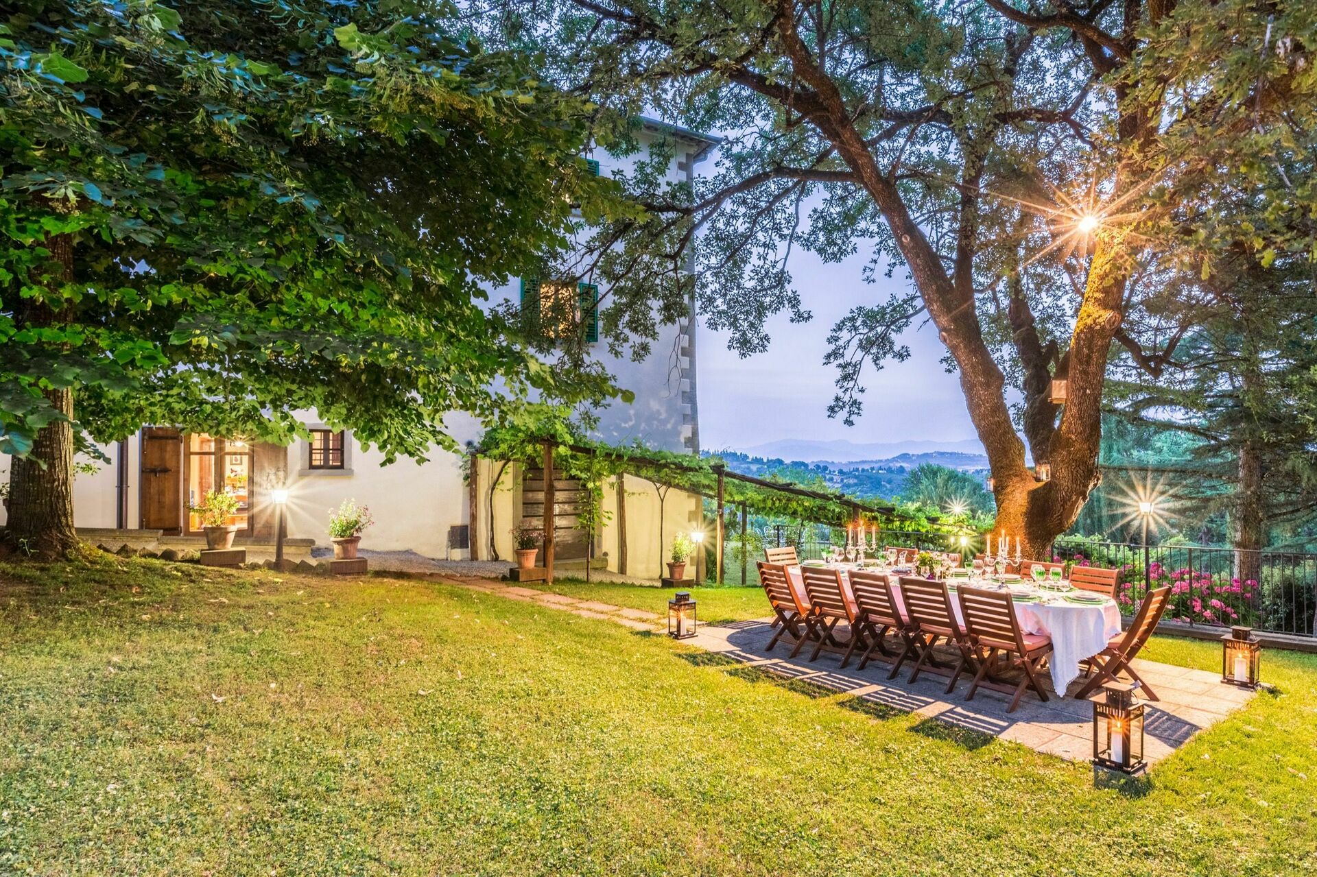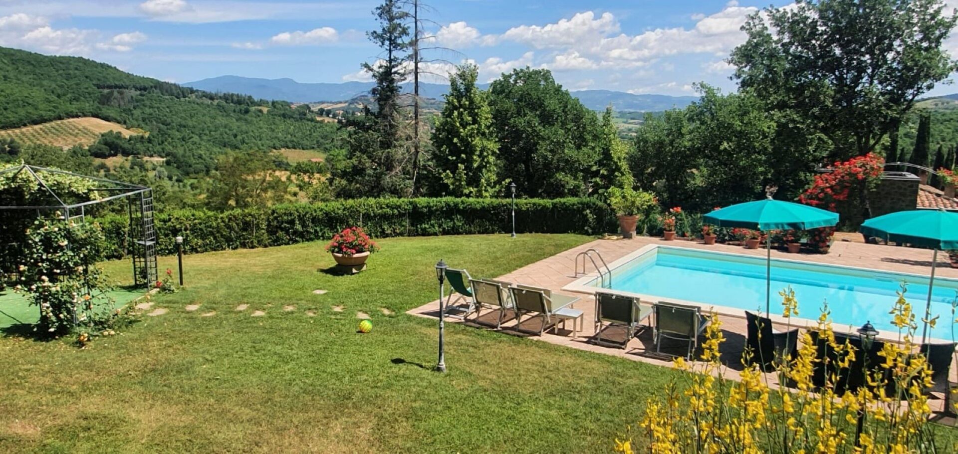 De to ejendomme er fulde af karakter og de bliver kun endnu mere tiltalende med det udendørs rum denne ejendom kan tilbyde, med skoven; de tre hektar velplejede haver på tværs af tre terrasser; de endeløse udendørs spisepladser og bænke med en smuk udsigt over det toscanske landskab til udendørs måltider eller afslapning med en kop kaffe og en god bog; og to swimmingpools (hvoraf den ene er 12 x 6 m; dybde: 1,5 m) med liggestole, en opvarmet jacuzzi (til rådighed på forespørgsel) og en gammel stenlade, der er lavet om til et stort bruse- og omklædningsrum med badefaciliteter. Dette vidunderlige udendørsareal i denne ejendom er ideelt til et udendørs bryllup og giver mulighed for, at der kan arrangeres dejlige bryllupsmåltider ved borde på terrasserne med en flot udsigt over de bølgende bakker i det toscanske landskab. Bryllupsceremonien kan foregå i den smukke italienske have med blomster omkring og dine gæster har masser at lave rundt omkring, som giver alle mulighed for at skabe utrolige minder på denne særlige dag. Til din bryllupsfotografering er der også endeløse fantastiske baggrunde for at indfange dit magiske og romantiske bryllup perfekt i disse eventyrlige kulisser.