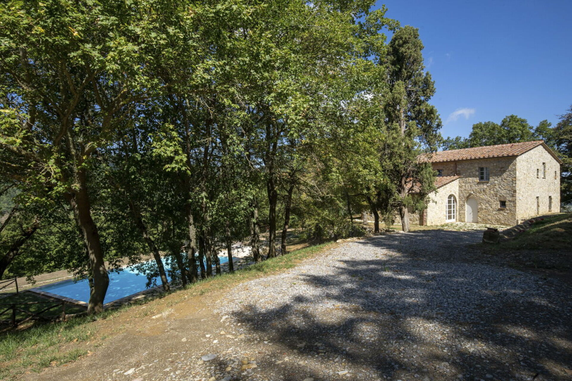 Ankomst til huset sker via en 1,5 km lang grusvej: vejen er i god stand, men er ikke egnet til sportsvogne eller lavtgående køretøjer.