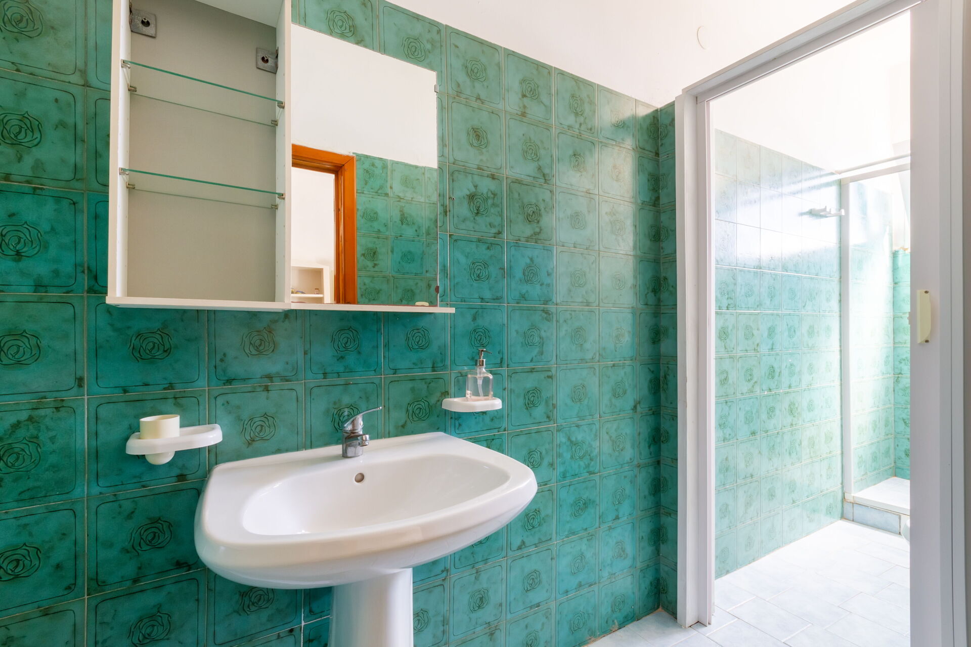 Badeværelse: vask, wc, bidet, bruser, hårtørrer.