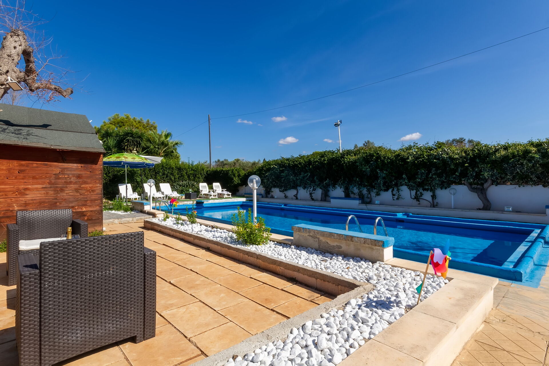Have: swimmingpool (privat, udendørs), bruser, WIFI internet, grill, udendørs spiseplads, spisebord, havemøbel, liggestol.
