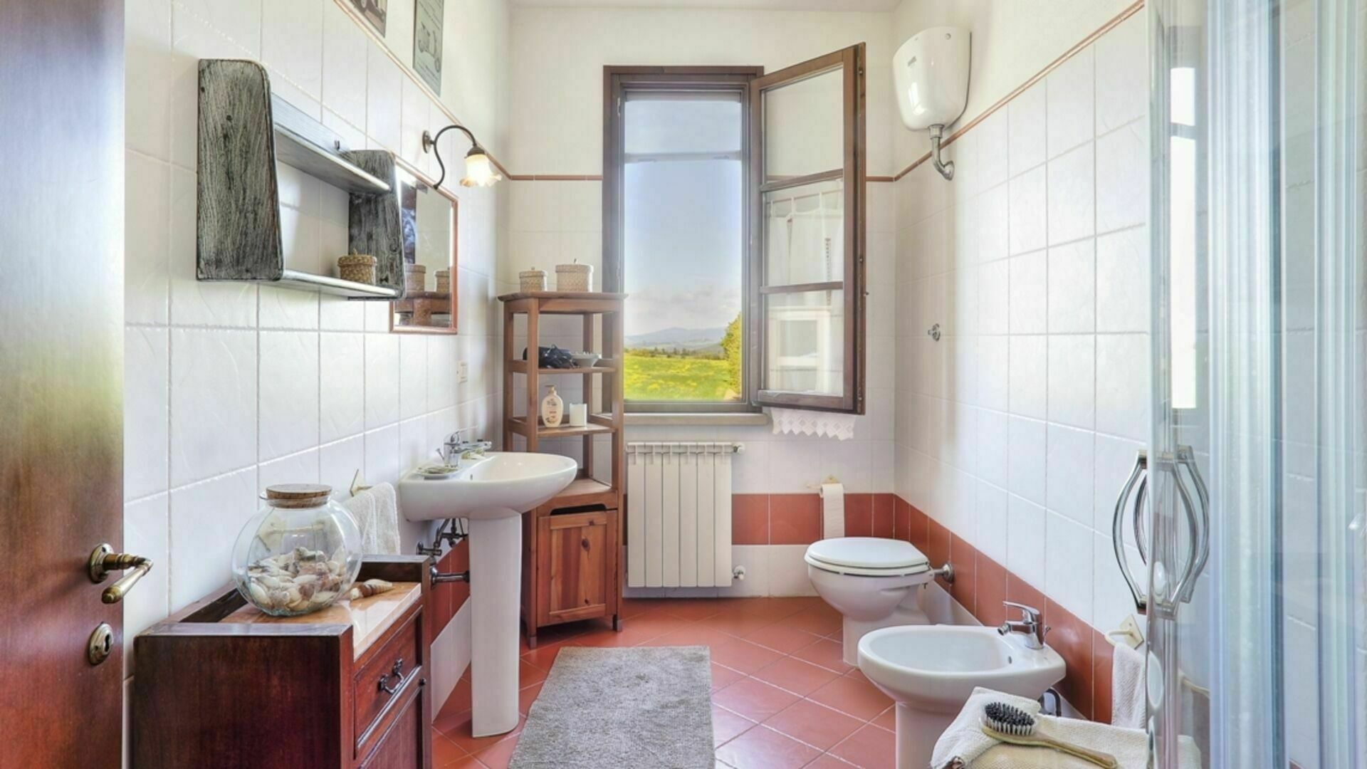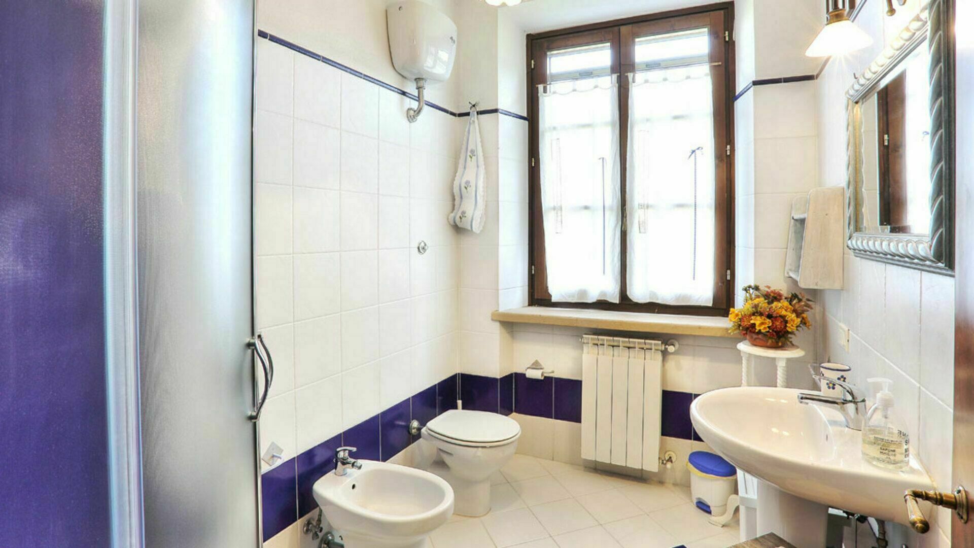 Badeværelse 1: vask, wc, bidet, bruser.