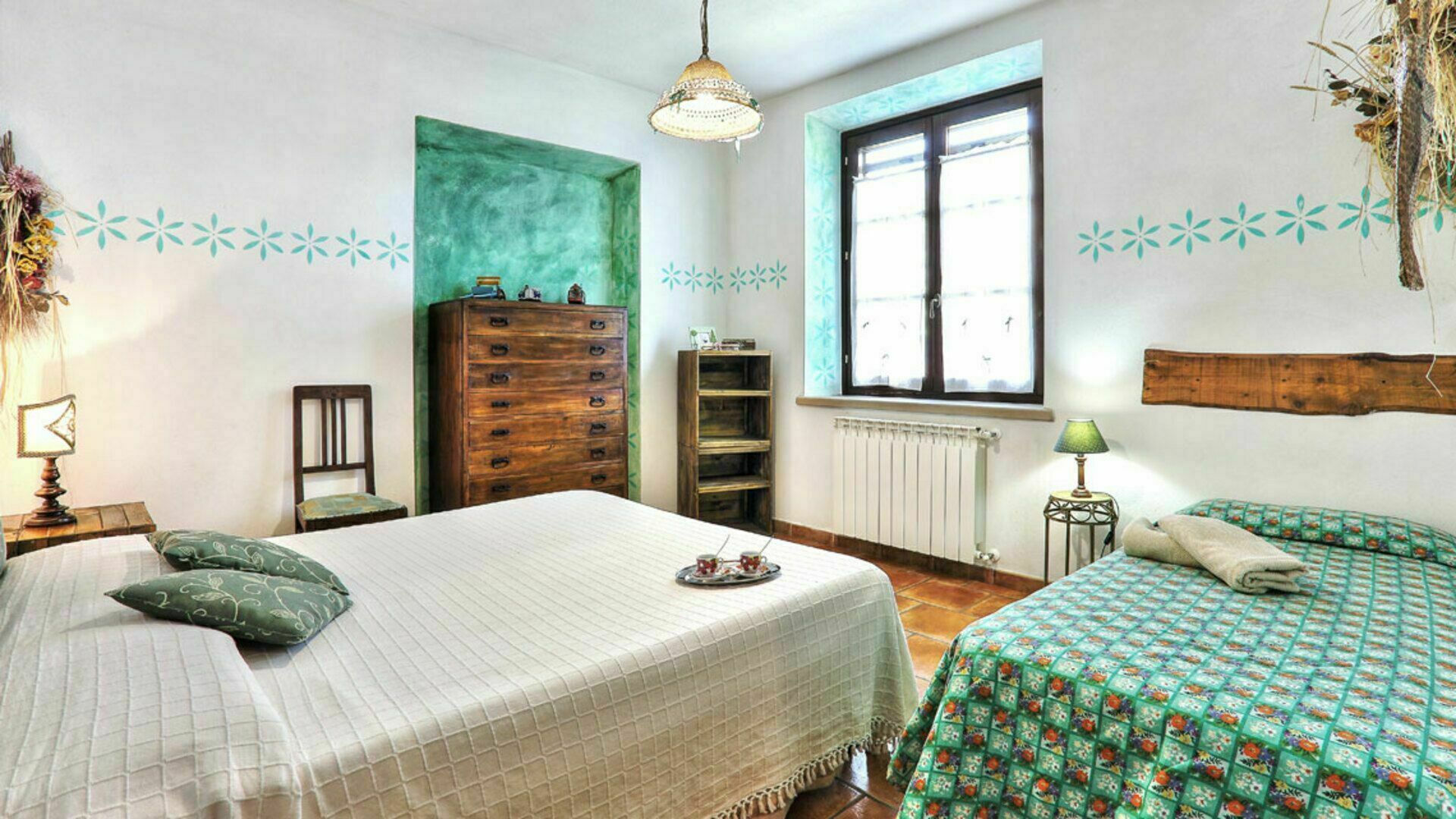 Soveværelse 1: to enkeltsenge, fransk seng.