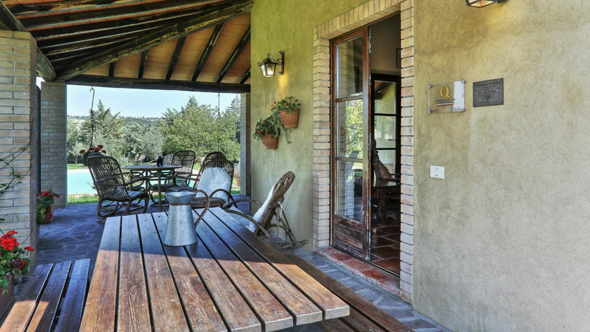 Veranda: udendørs spiseplads, spisebord.