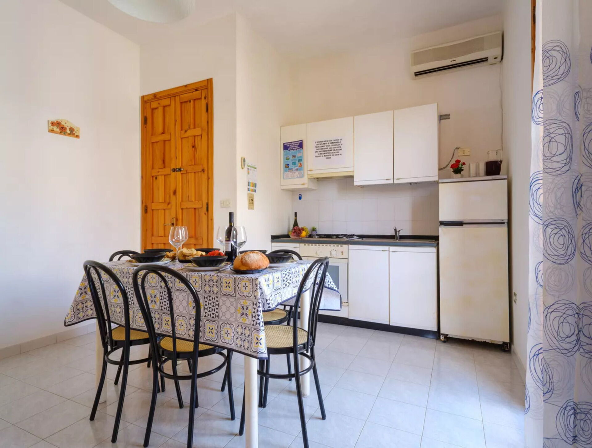 Køkken - stue: veludstyret køkken, spisebord, køleskab, fryser, mikroovn, ovn, brødrister, italiensk kaffemaskine, vaskemaskine, dobbelt sovesofa, WIFI internet, klimaanlæg, myggenet, satellit tv.