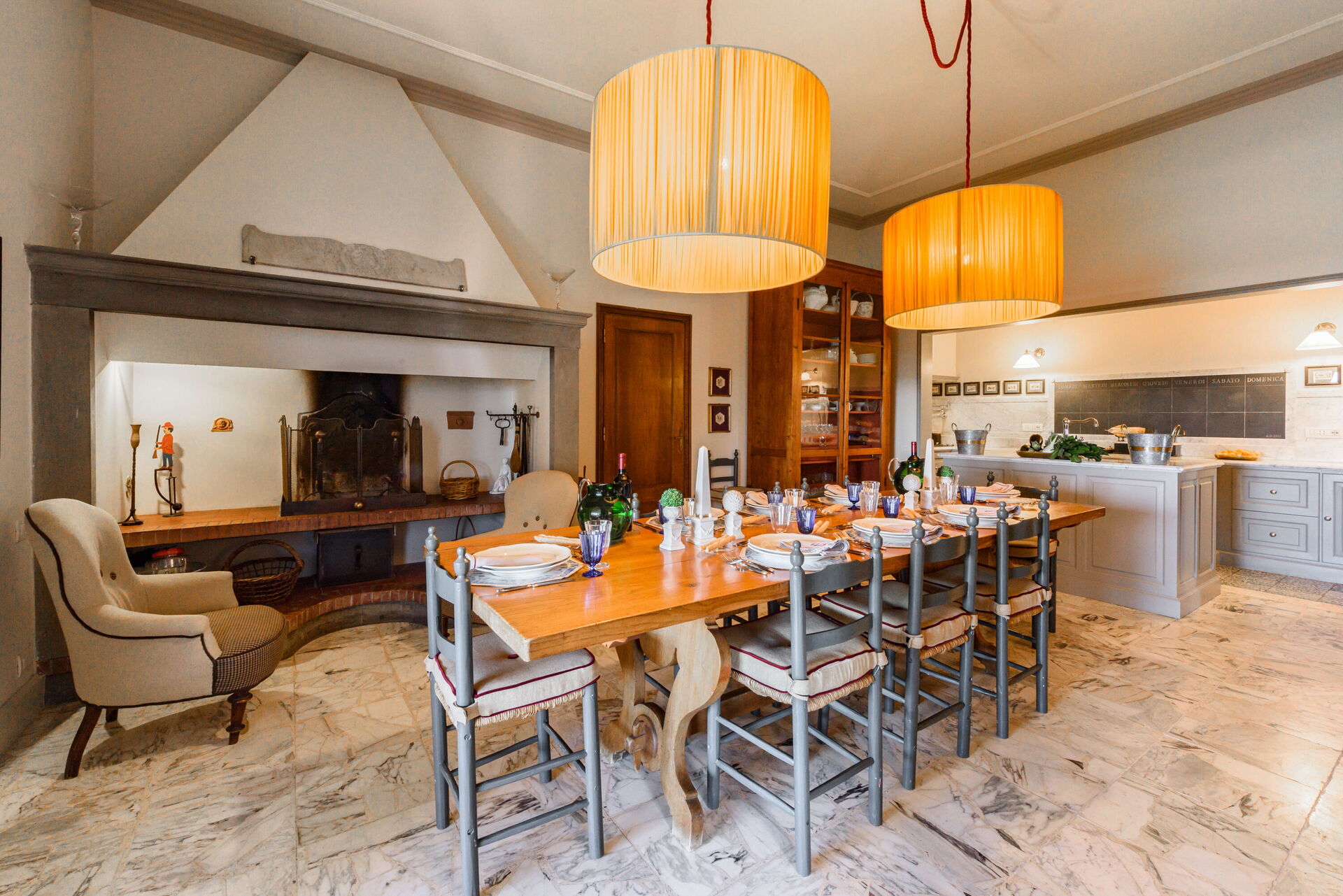 Ved ankomst til Villa Agnola vil I finde en skøn ren og velholdt ejendom med udsigt over bakkerne ideel til en behagelig ferie i Toscana. Uanset hvordan I tilbringer dagene - med shopping, museumsbesøg, sightseeing eller bare ved at køre rundt på landet, så kan I køle ned med familie og venner ved poolen, når I kommer hjem, hvilket er en perfekt måde at afslutte endnu en dejlig dag på i Toscana. Der er et køkken inkluderet mikroovn og køleskab, samt, , samt masser af service og bestik til op til 11 personer. Hvis I foretrækker at spise 'al fresco', er der en fuldt møbleret gårdhave, hvor I kan nyde vejret, mens I spiser udendørs.