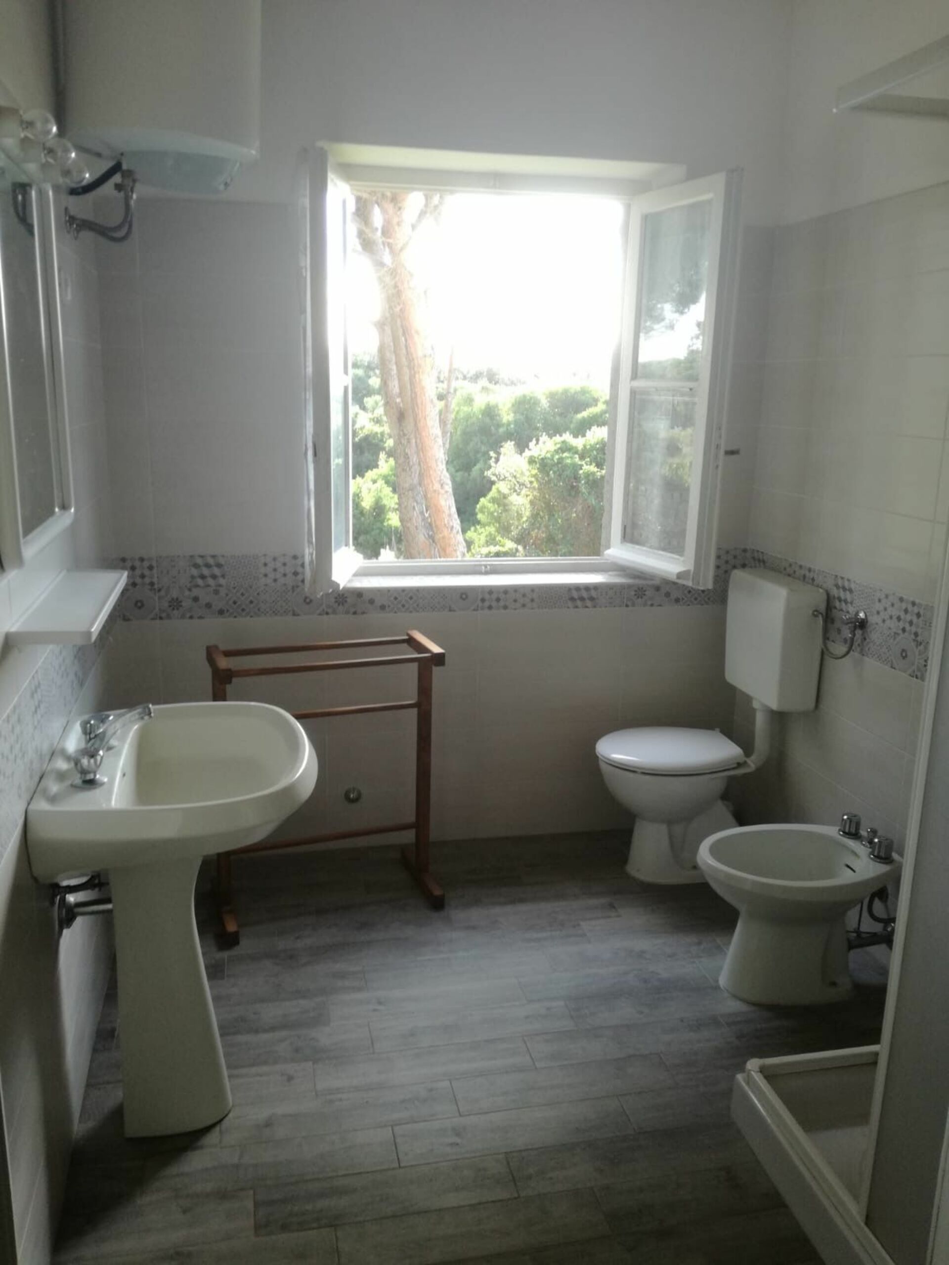 Badeværelse: vask, wc, bidet, bruser, hårtørrer.