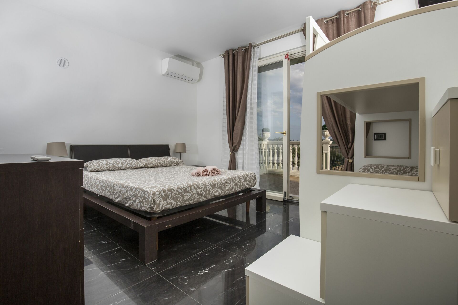 Soveværelse 1: dobbeltseng, WIFI internet, klimaanlæg, lænestol, skrivebord.