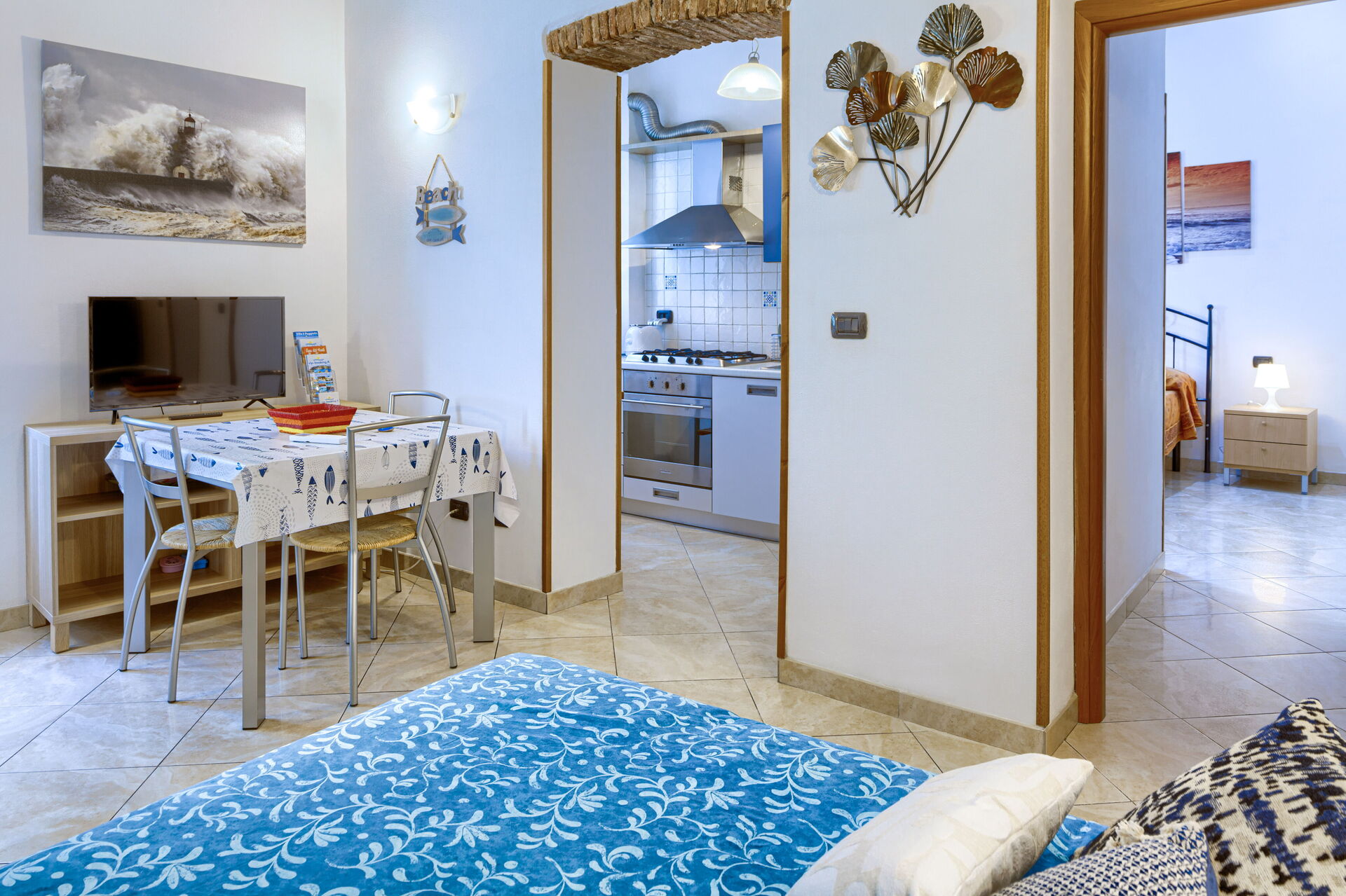 -- “Lejlighed Mafalda n° 2”: 45 kvm, til højst 3 personer, med et soveværelse med dobbeltseng og en sovesofa i stuen.