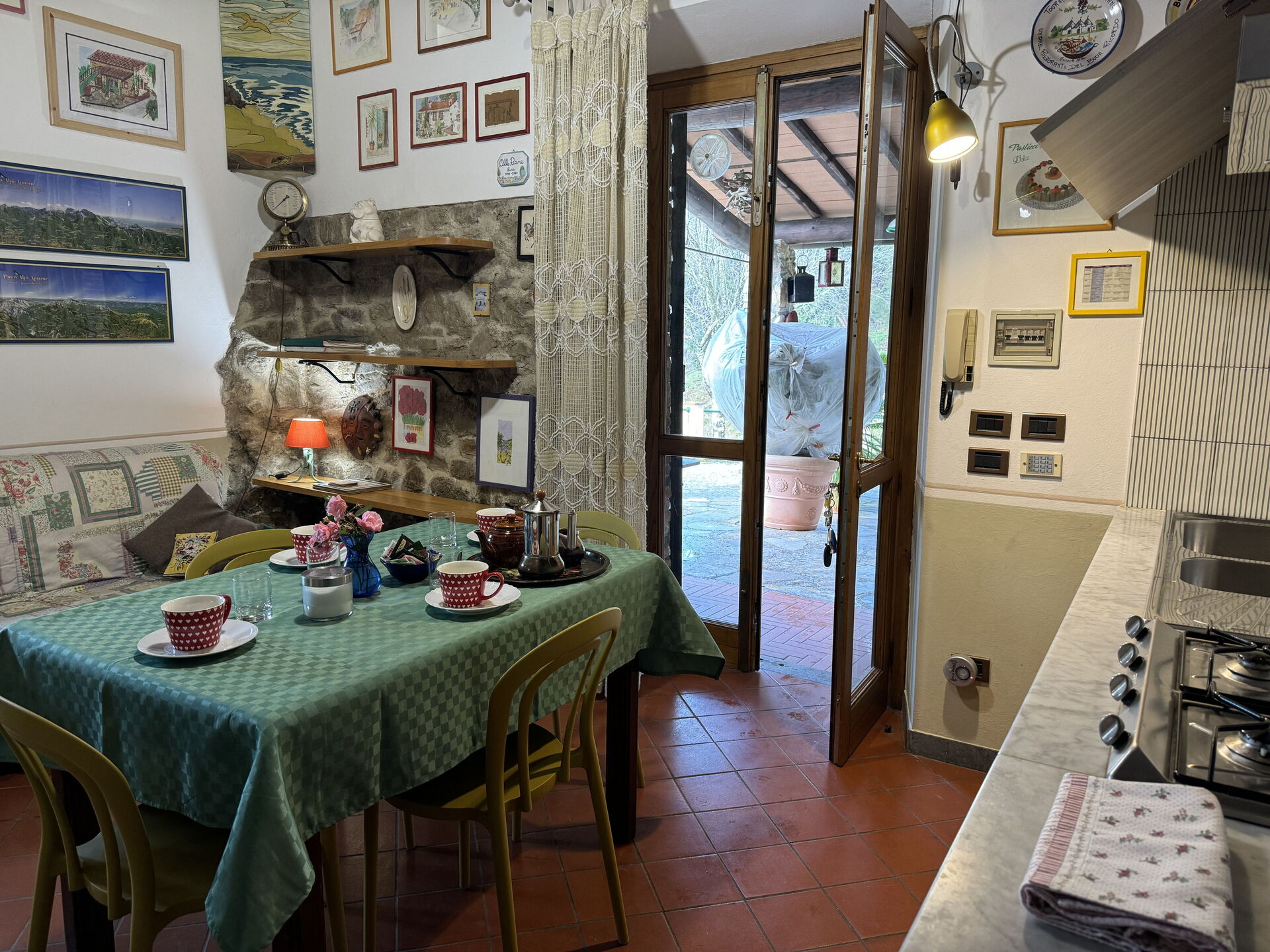 Ejerne bor på bagsiden af feriehuset Le Piane; med separat indgang og de har deres eget private udendørsareal.