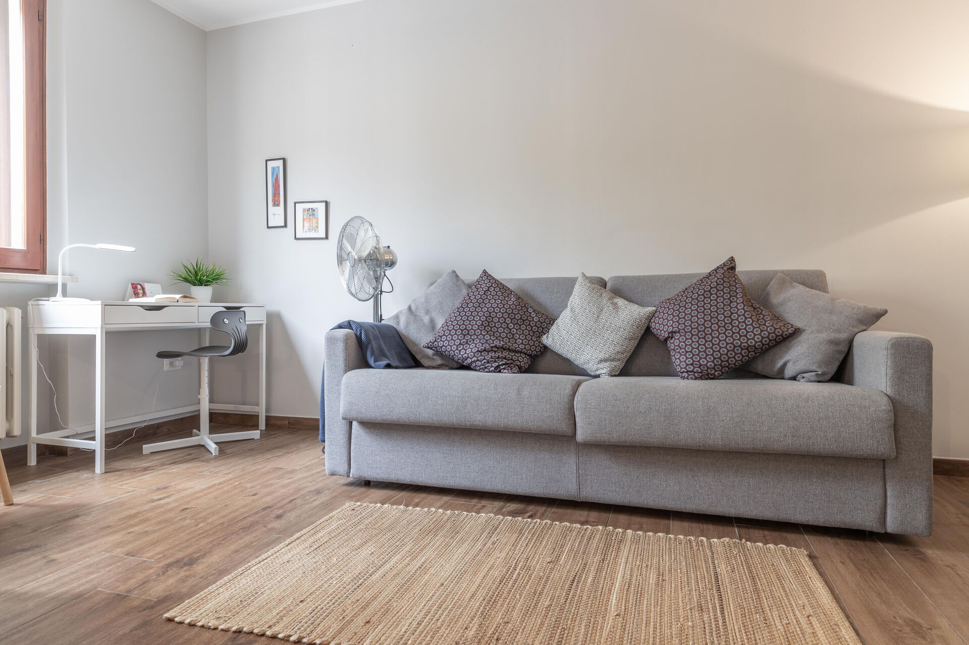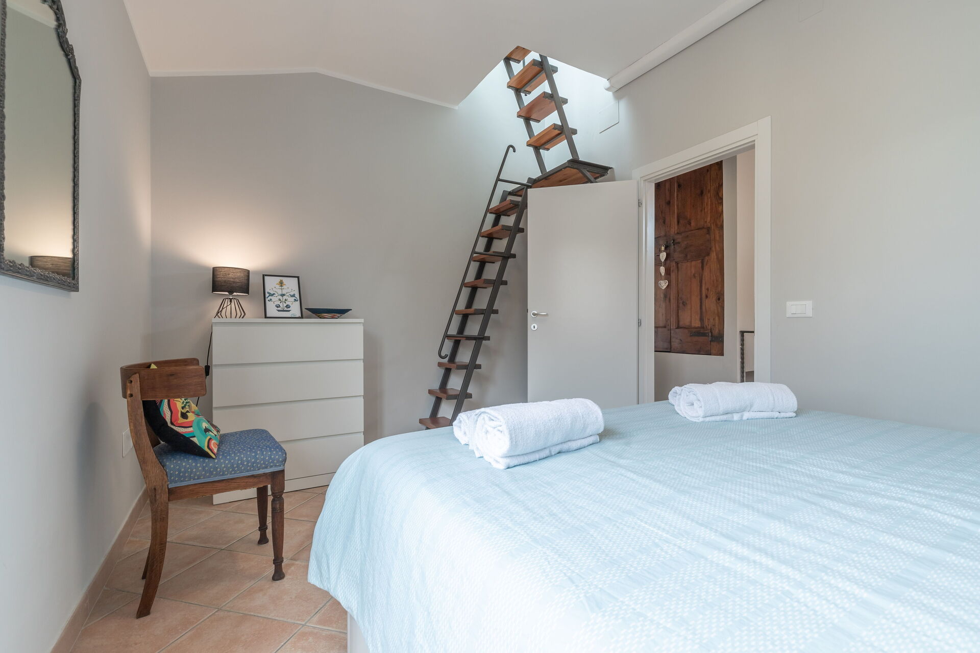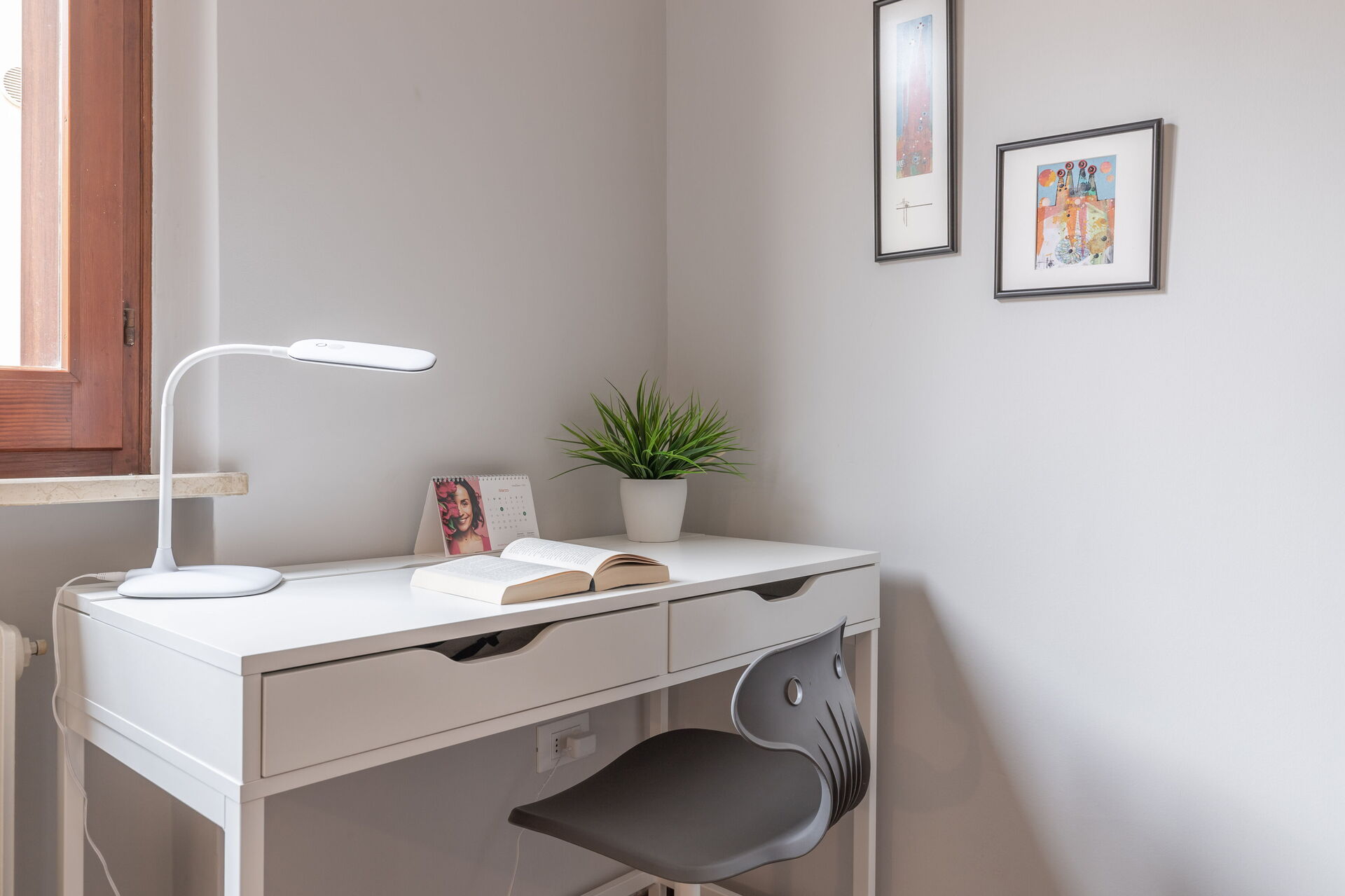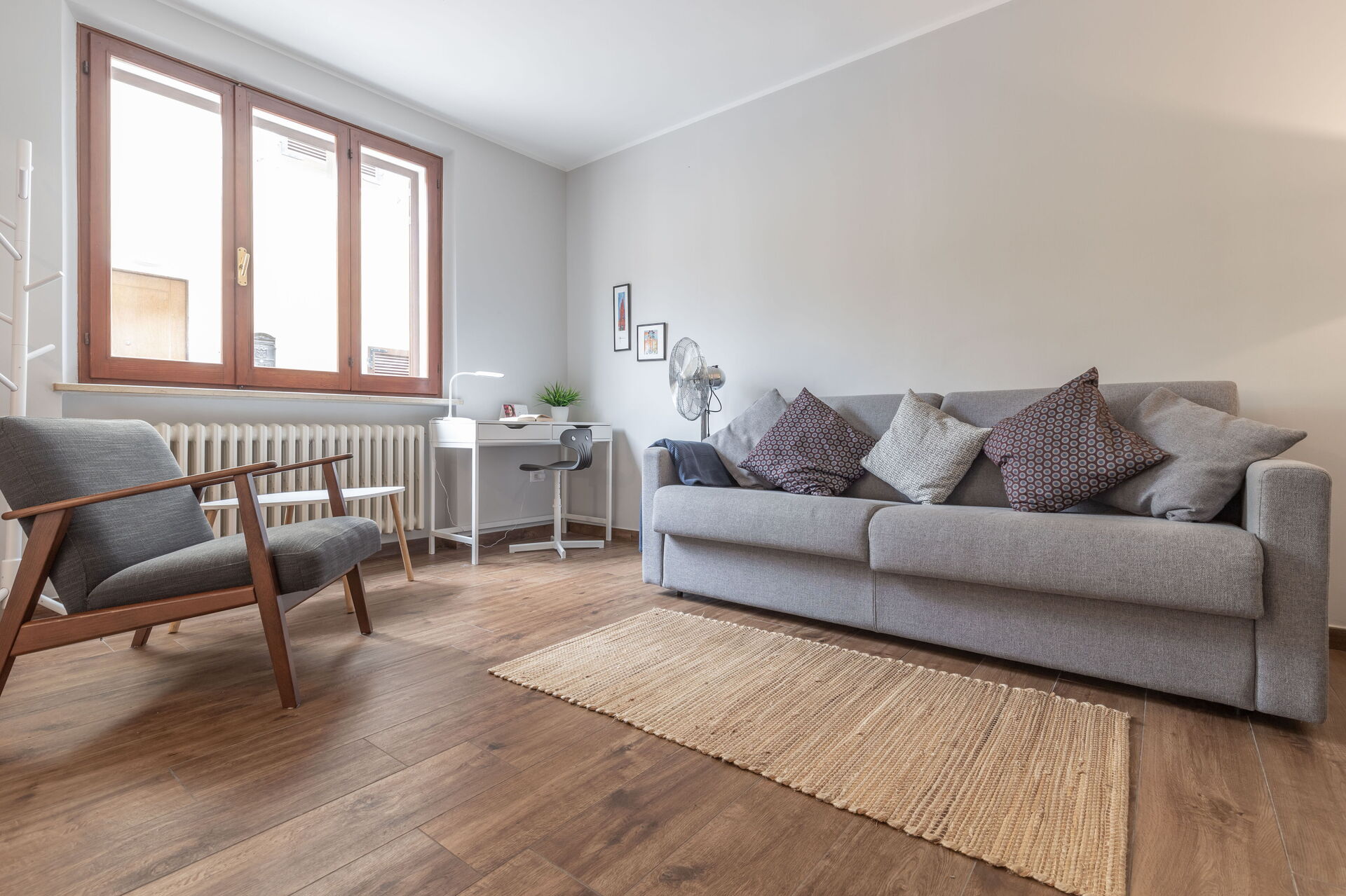 Soveværelse 1: dobbeltseng, WIFI internet, lænestol, skrivebord.