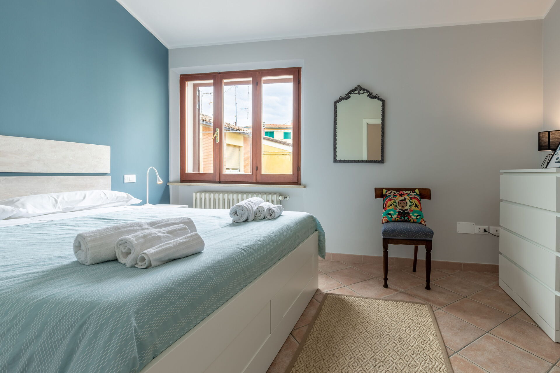 Ved ankomst vil I møde en fin ren velholdt ejendom med udsigt over byen perfekt til fredelig ferie i Marche. Uanset hvordan I tilbringer dagene - med shopping, museumsbesøg, sightseeing eller bare ved at køre rundt på landet, så kan I køle ned med familie og venner , når I kommer hjem, hvilket er en perfekt måde at afslutte endnu en dejlig dag på i Marche. At nyde et måltid med venner og familie er en kæmpe del af den italienske kultur. Benyt det velekviperede køkken til madlavning med lokale produkter, når du er på ferie. Køkkenet indeholder kaffemaskine, mikroovn, brødrister, komfur og køleskab, samt, masser af service og bestik til op til seks personer.