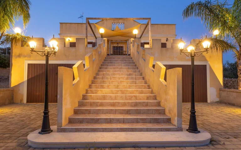 Torre Suda: Hyggeligt, komfortabelt villa "Ginevra", omgivet af træer og marker. 1.5 km fra bymidten af Racale, 4.5 km fra centrum af Taviano, 1.5 km fra havet, 1.5 km fra stranden. Til alene benyttelse: have 5'000 m2 med planter og træer, pool med varme (10 x 5 m, 230 - 120 cm dyb, Sæsonbestemt tilgængelighed: 01.Apr. - 31.Okt.). Udendørs brus, grill, Underholdning af poolen af ejeren/gartneren. I huset: solterrasse, alarmanlæg. Parkeringsplads på grunden. Indkøbsforretning 1.5 km, fødevarebutik 1.5 km, supermarked 1.5 km, restaurant 1.5 km, bar 1 km, klippestrand "Torre Suda" 3 km. Nærliggende attraktioner: Punta Pizzo e Punta della Suina 10 km, Gallipoli 18 km, Santa Maria di Leuca 35 km, Castro 38 km. Bemærk venligst: bil anbefales.