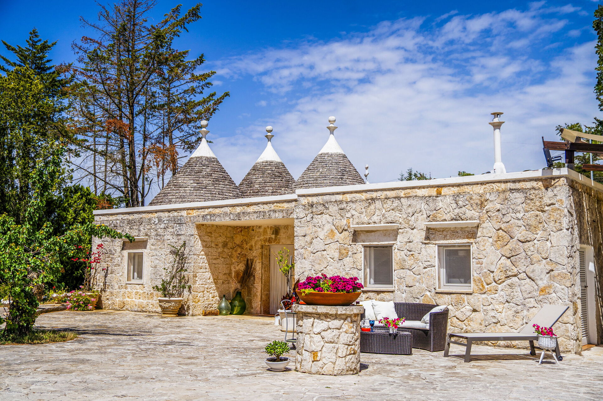 Ejendom Villa Sole Martina Franca er en fin ejendom (410 m2) som har privat pool, klimaanlæg og WIFI. Ejendommen kan huse op til 15 personer i syv soveværelser med fire badeværelser. Ejendomen er velbeliggende 5 km fra Martina Franca, Italien, i turistområdet "Salento" og kun 19 km fra Alberobello. Hvis I ønsker at besøge den italienske kyst, er der kun kort afstand til havet (20 km).