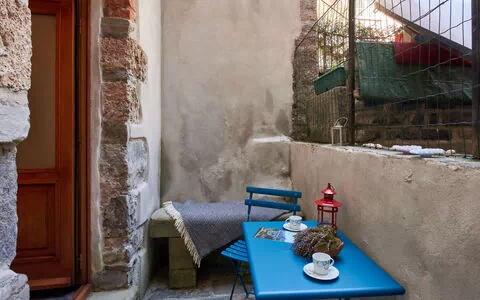3-værelse-rækkehus 100 m2 på 3 etager, på forhøjet stueetage. Rustikt og smagfuld indrettet: åben stue/spisestue med åben kamin (kun til dekoration), spisebord. Åbent køkken (ovn, opvaskemaskine, Gaskomfur, 4 gasblus, Brødrister). Overetage: åben 1 dobbeltværelse med skydedør. Bad/bidet/WC. 2. Overetage: skrå, åben galleri med 2 senge. Gulvvarme. Lille terrasse. Havemøbler. Til benyttelse: højstol, barneseng til 2 år. Internet (trådløs LAN [WLAN], gratis). Garage (1 Bil) i 50 m, højde 224 cm, bredde 220 cm. Bemærk venligst: ikke-ryger lejlighed. I stedet for et lukket soveværelse er nogle sovepladser placeret i et åbent område (galleri, alkove etc.). IT097043C2UXS3ZMJ6