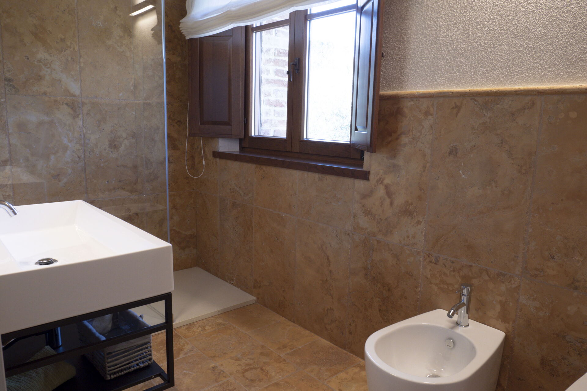 Badeværelse: vask, wc, bidet, bruser.