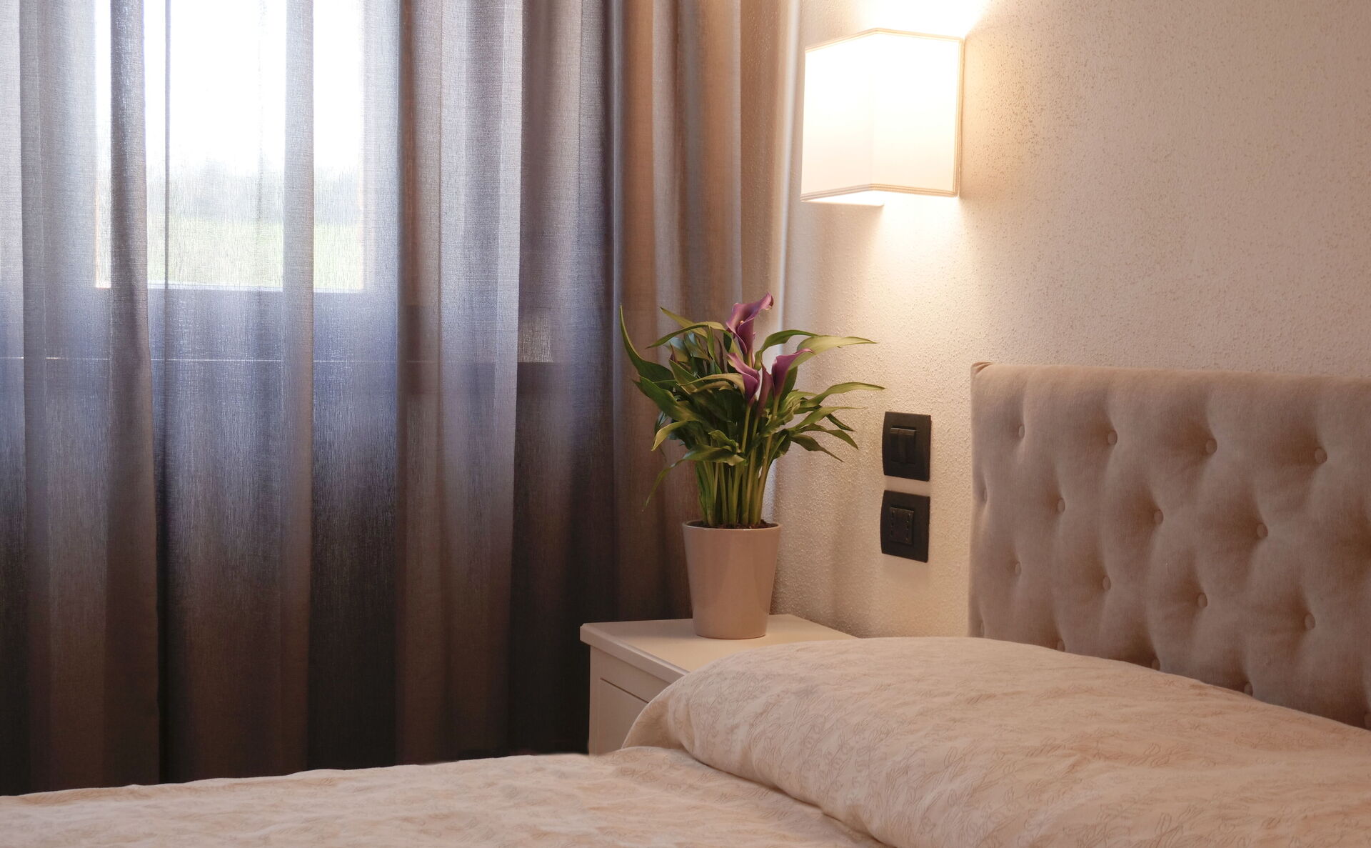 Soveværelse med bad 4: dobbeltseng, WIFI internet, klimaanlæg, vask, wc, bidet, bruser, hårtørrer.