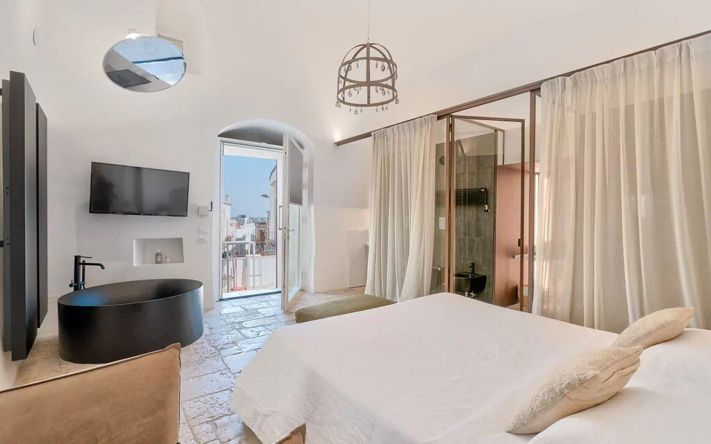 The Palace is part of a medieval tower where the rooms have been carefully restored by the skilled hands of local stone artisans and have enhanced the pre-existing architecture with modern and contemporary furnishings in the Apulian style.