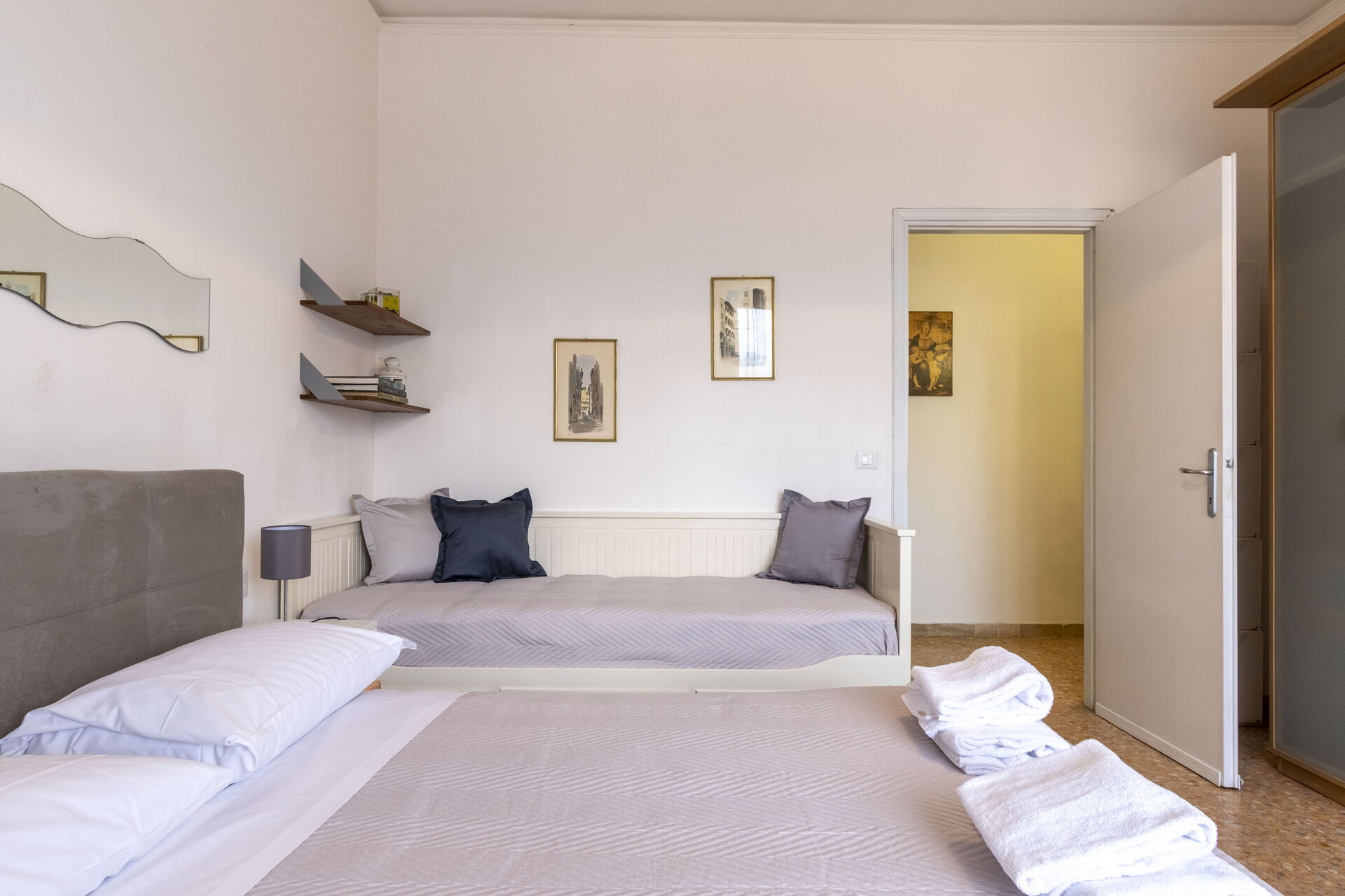 Soveværelse: dobbeltseng, enkeltseng, WIFI internet, klimaanlæg, skrivebord.