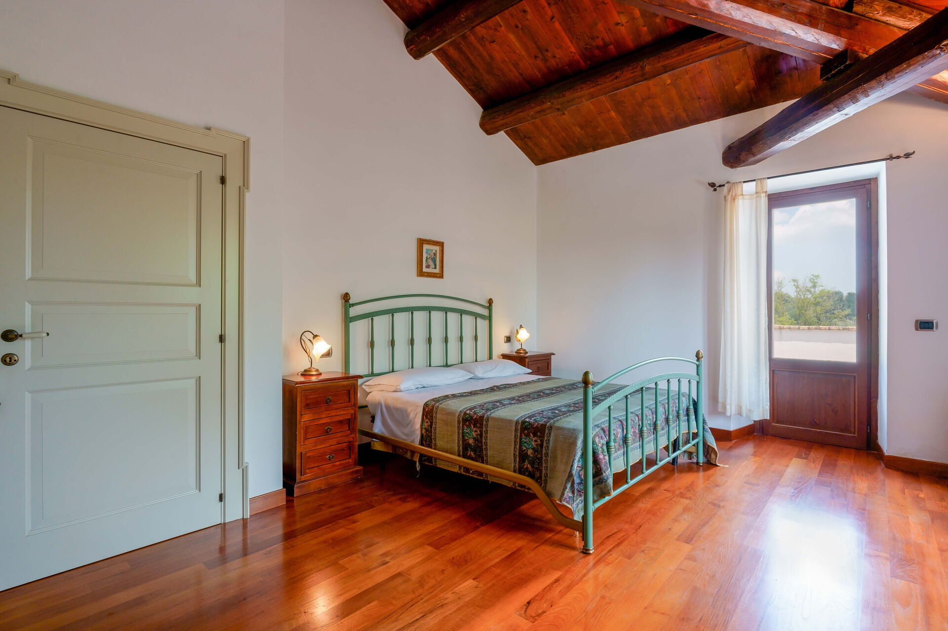 Soveværelse 1 (20 m2): dobbeltseng (bredde: 160m, længde: 190m), WIFI internet, myggenet, lænestol, udgang til balkon, udgang til terrasse.