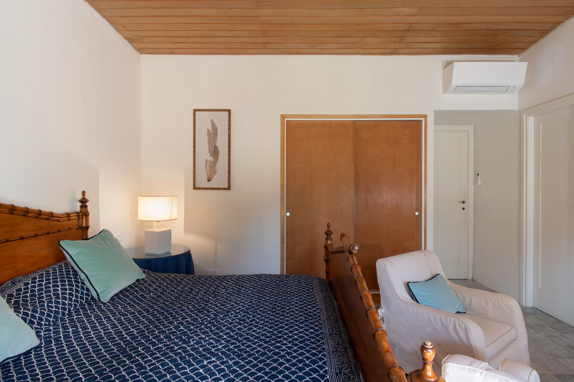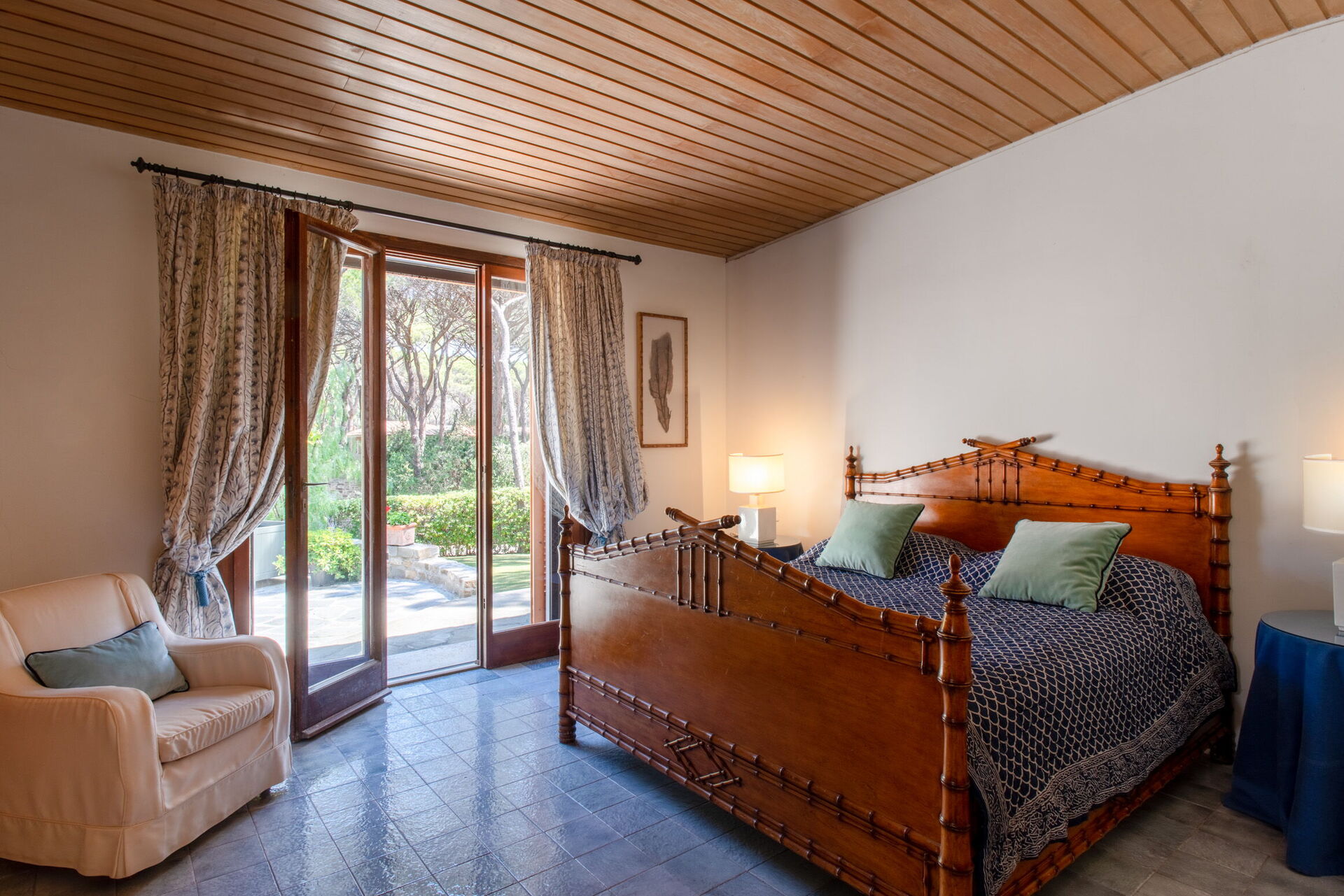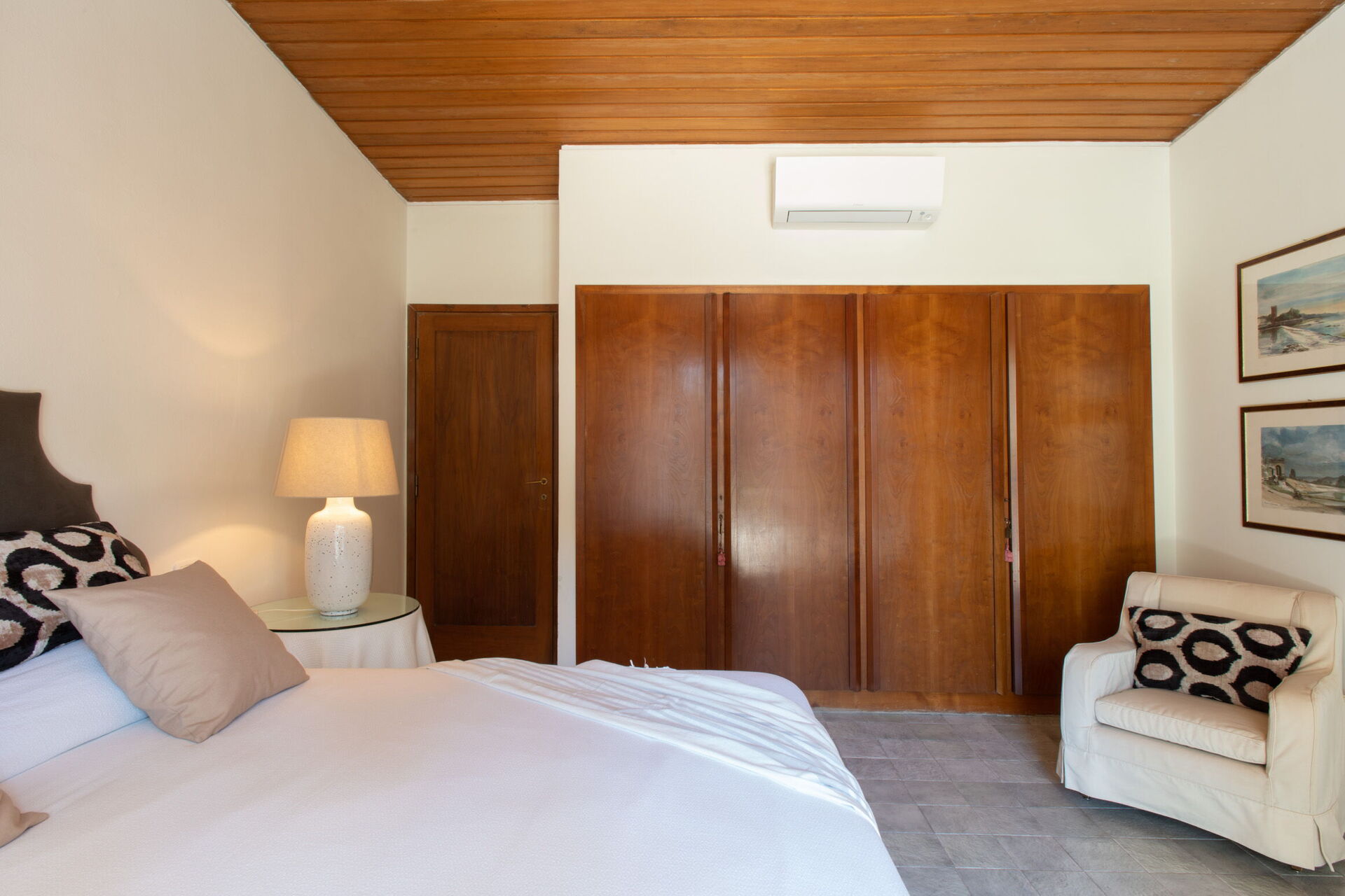 Soveværelse med bad 5: king size seng, WIFI internet, klimaanlæg, myggenet, lænestol, skrivebord, dobbeltvask, wc, bidet, bruser, hårtørrer, udgang til have.