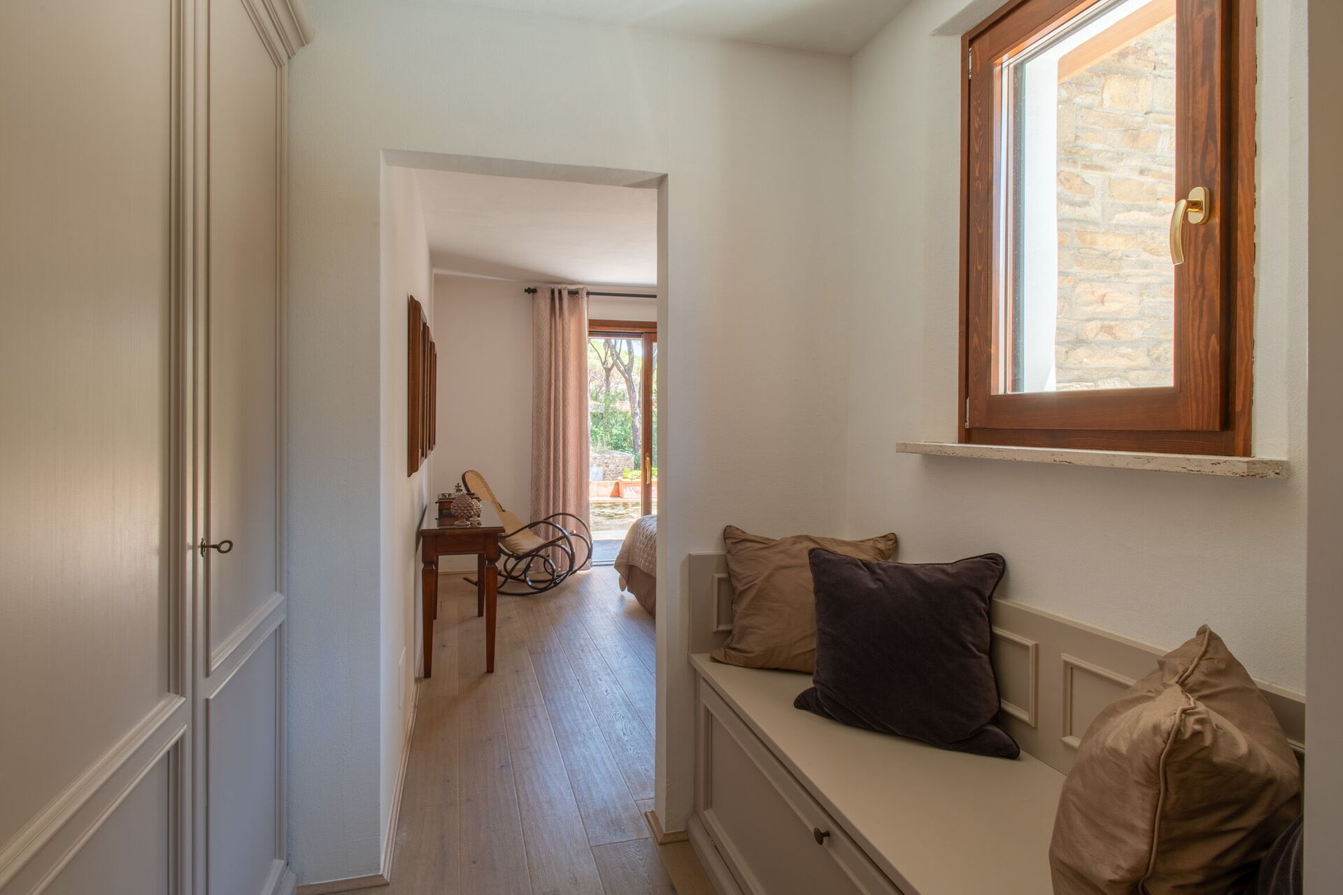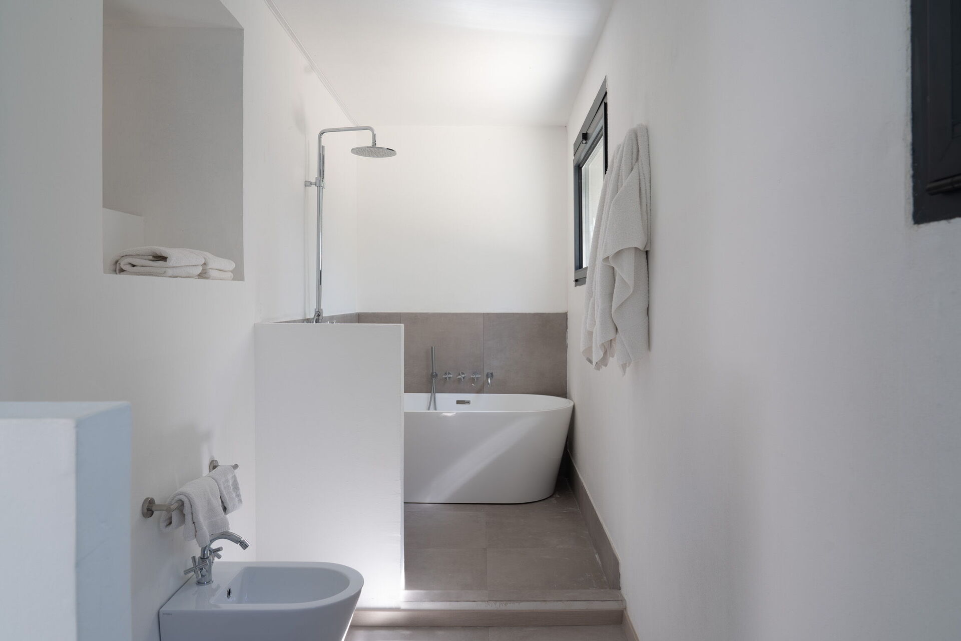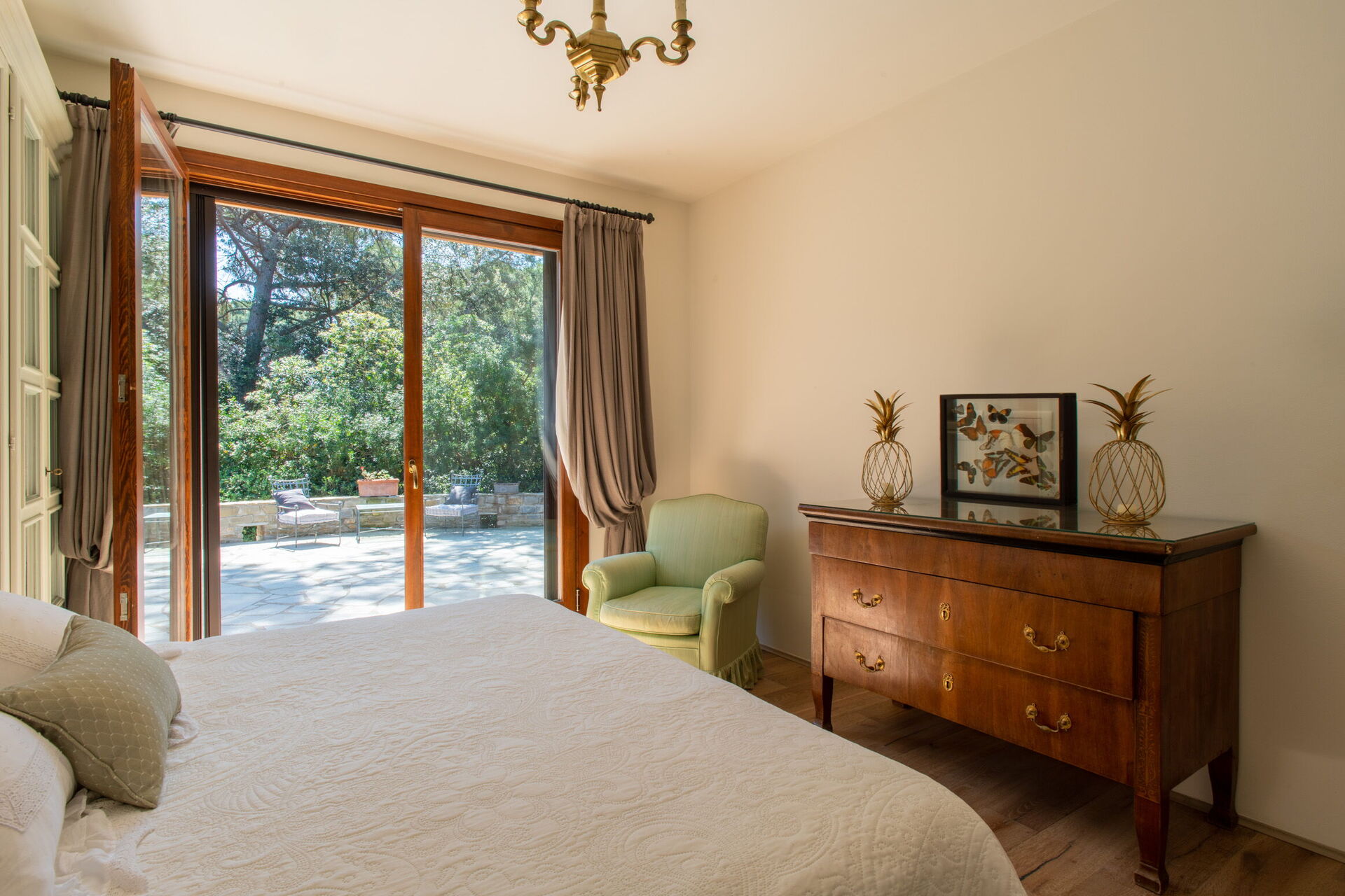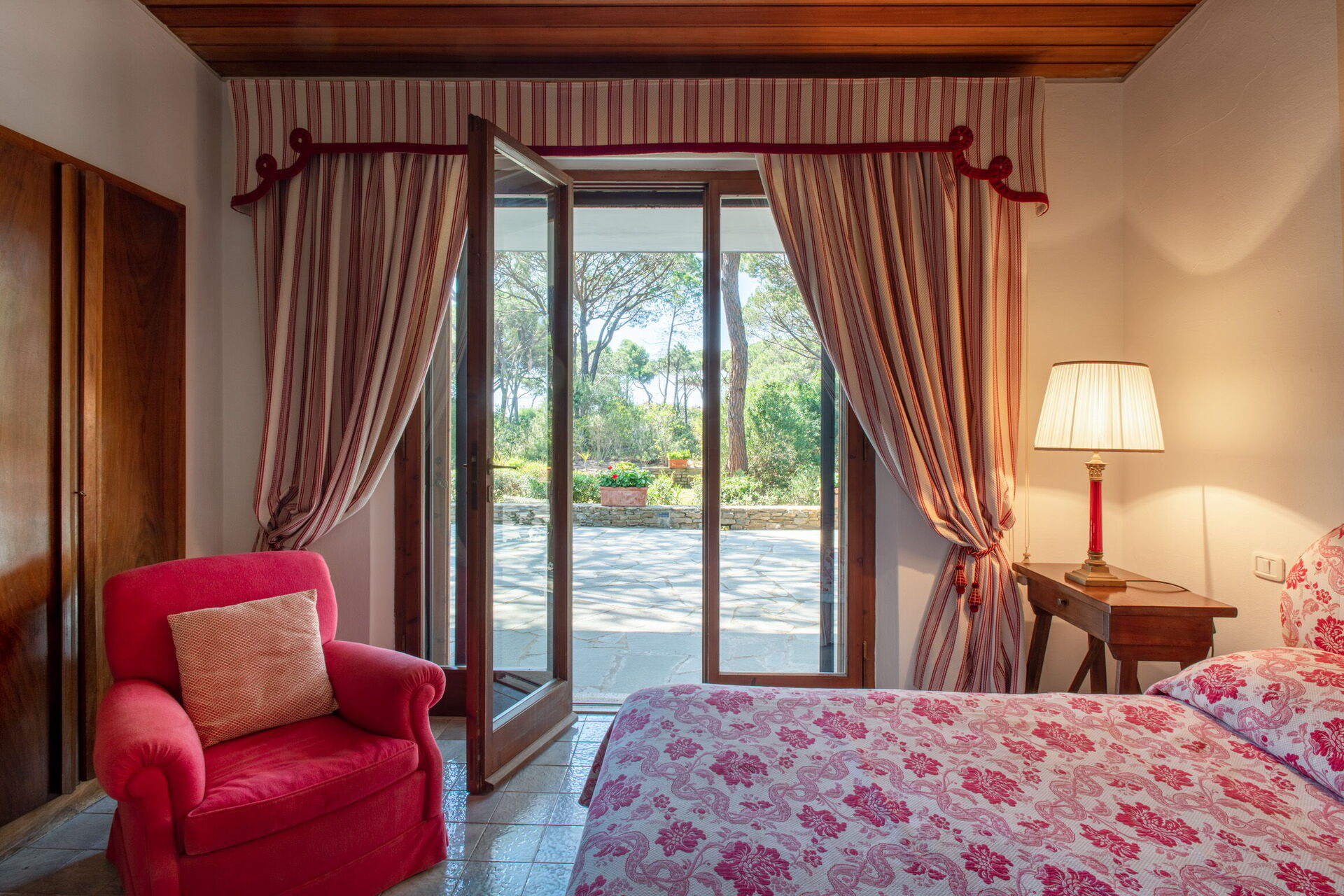 Soveværelse med bad 5: king size seng, WIFI internet, klimaanlæg, myggenet, lænestol, skrivebord, dobbeltvask, wc, bidet, bruser, hårtørrer, udgang til have.