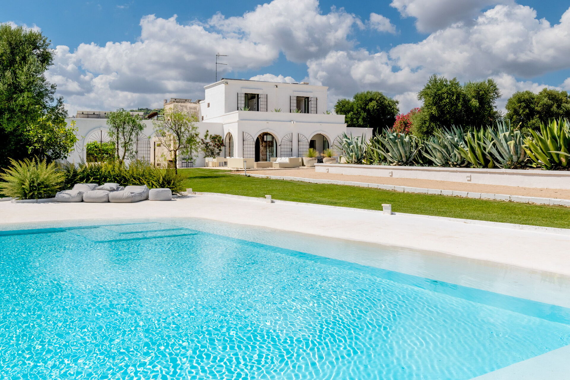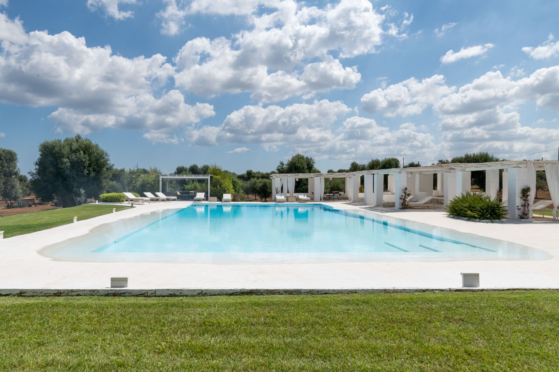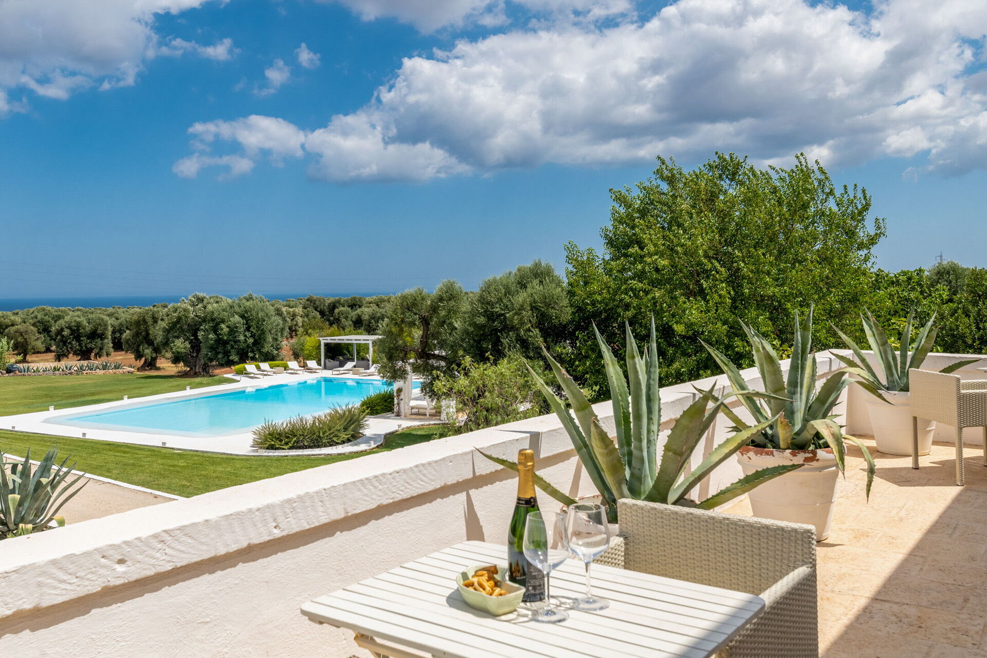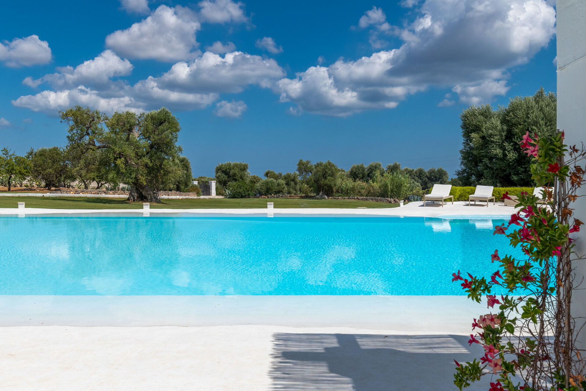 The Villa is located within the "Piana degli Ulivi Monumentali", an enormous flat expanse cultivated with olive trees with centuries-old and thousand-year-old trees, spread over two levels and is composed of a large living area, an island kitchen and nine bedrooms. double rooms with en-suite bathroom as well as a garden with a large swimming pool.