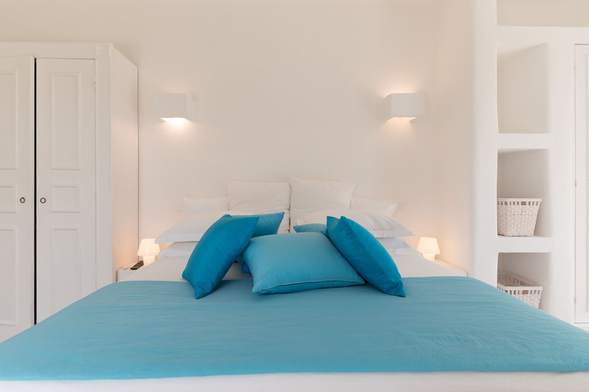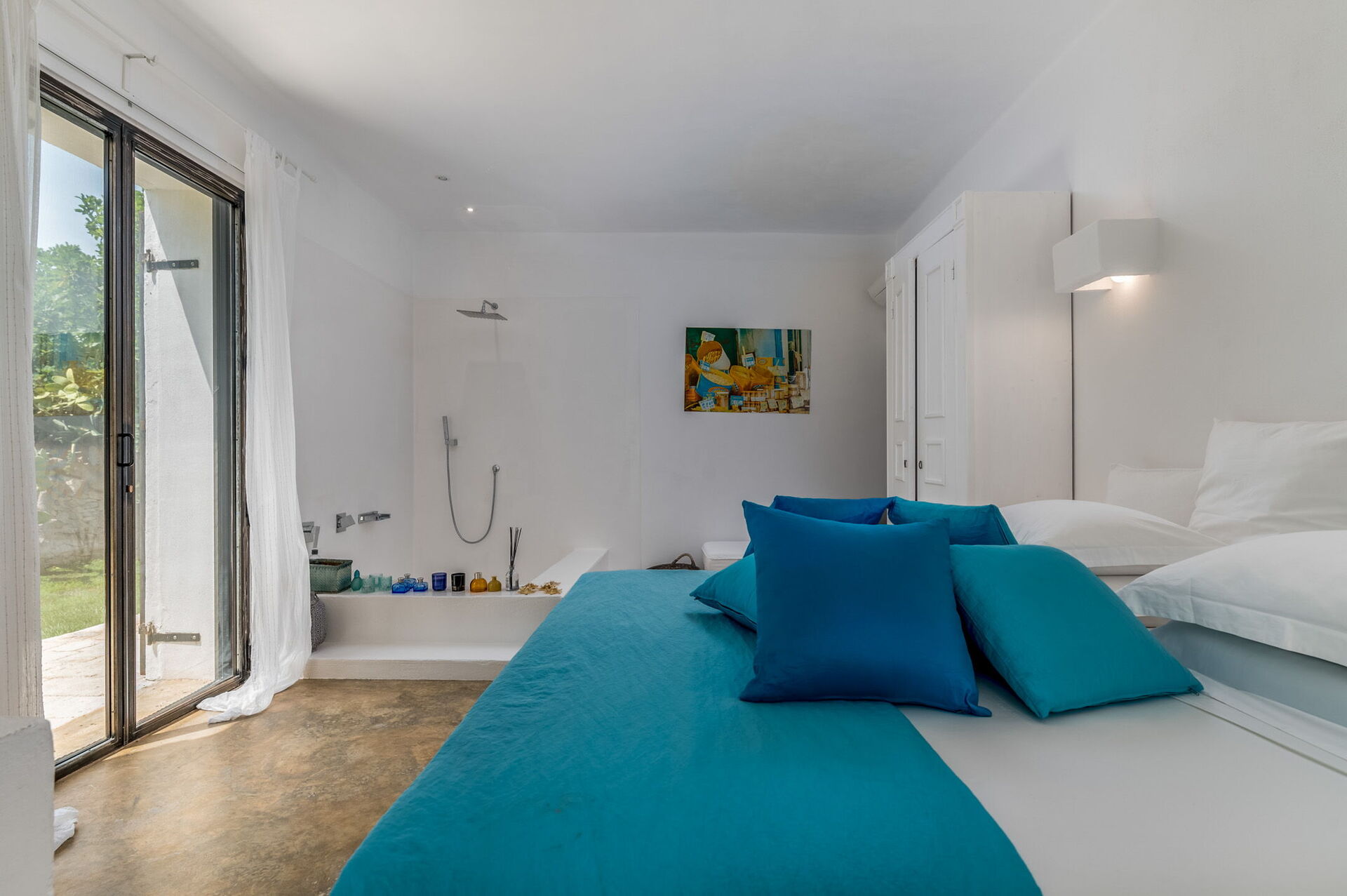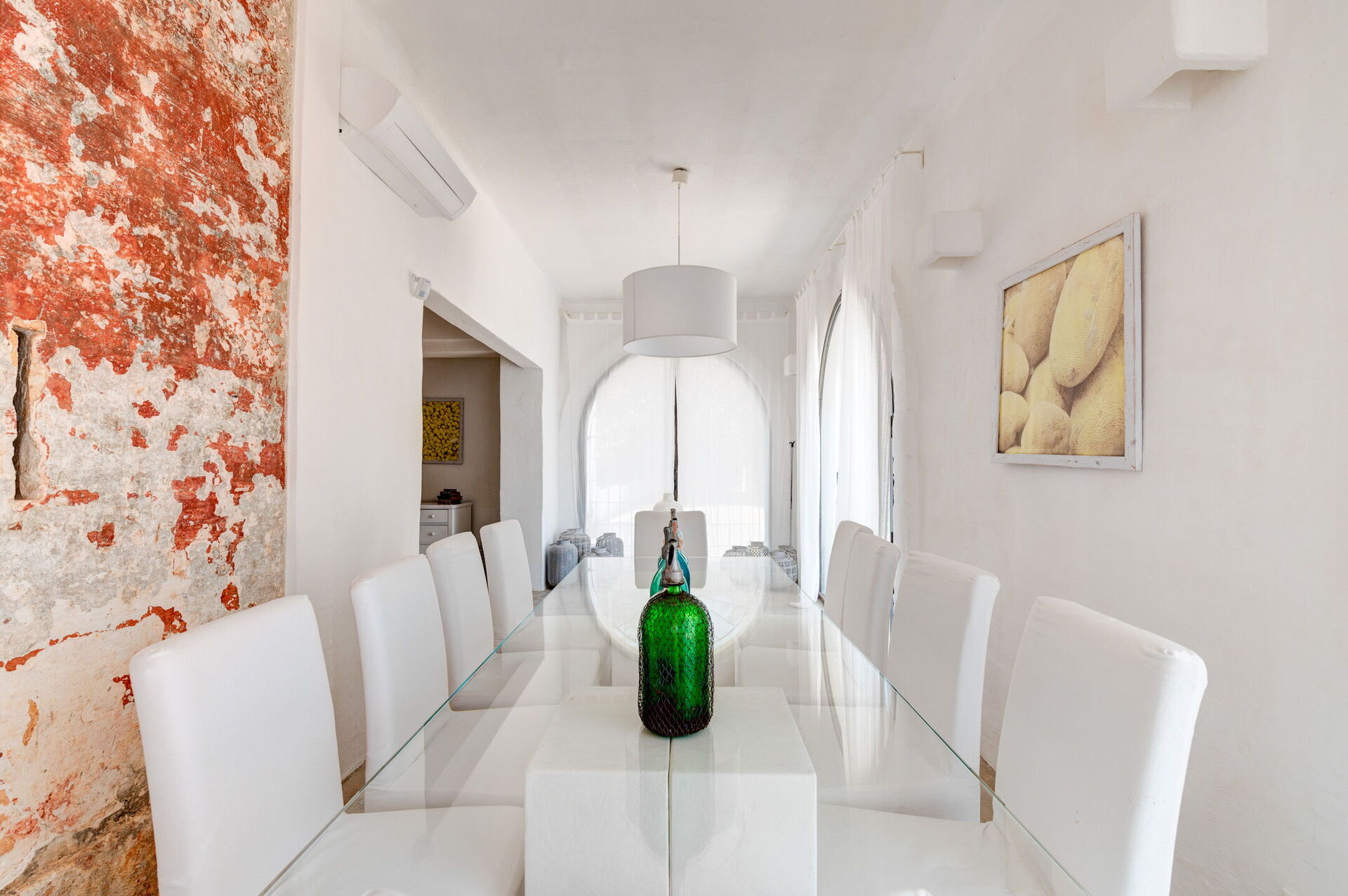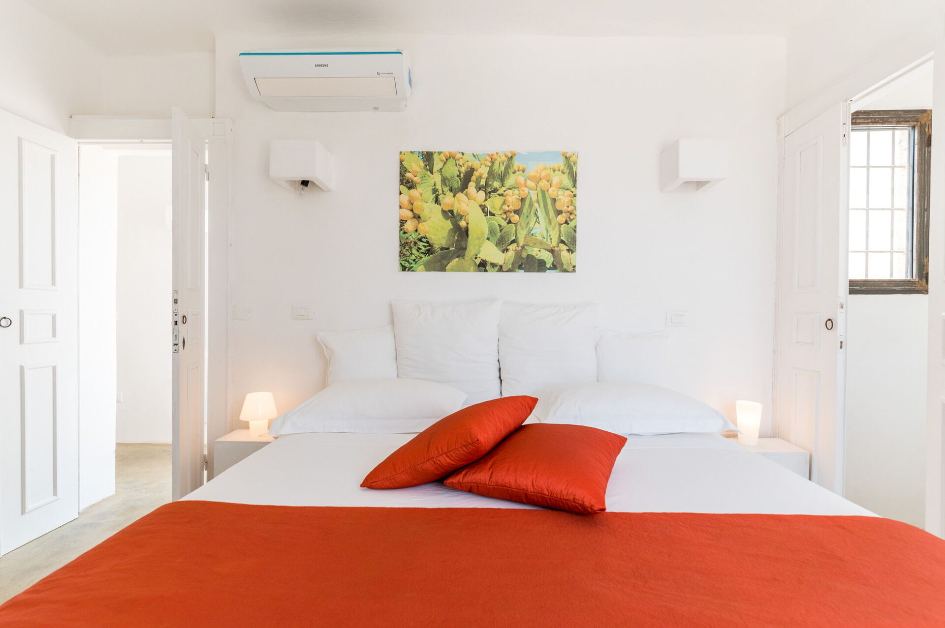 The second sleeping area is preceded by a living room with sofas and a glass pergola shaded by wonderful white drapes, from here you have access to two double bedrooms with characteristic exposed dry stone walls, as well as the further 3 double bedrooms which also have access from the outside.