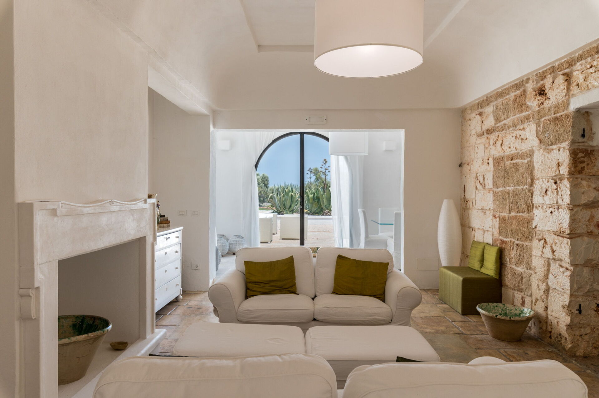 Masseria Isaia is a historic villa for rent with sea view for holidays in Puglia, with air conditioning and heating (the heating is not included in the rental price).