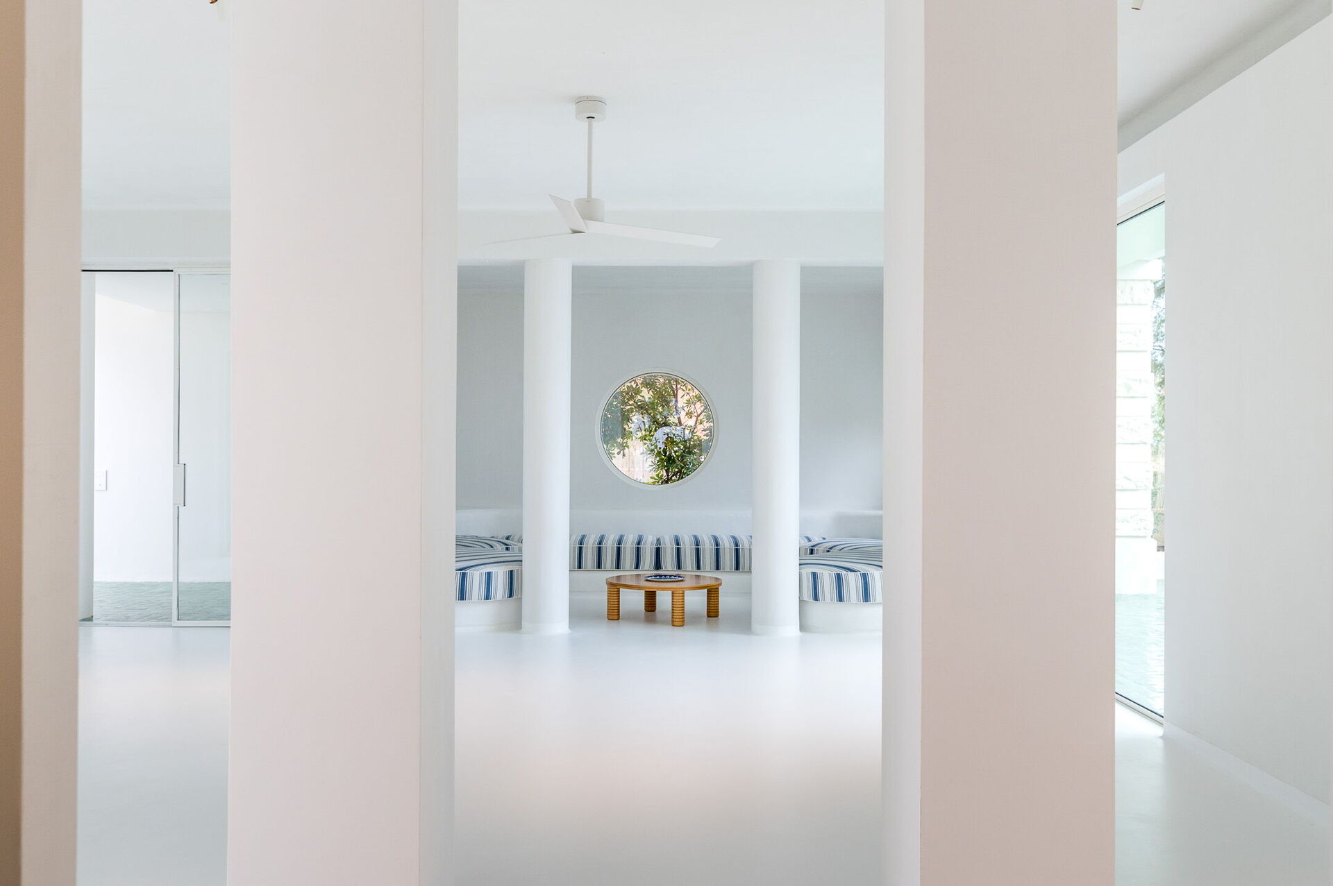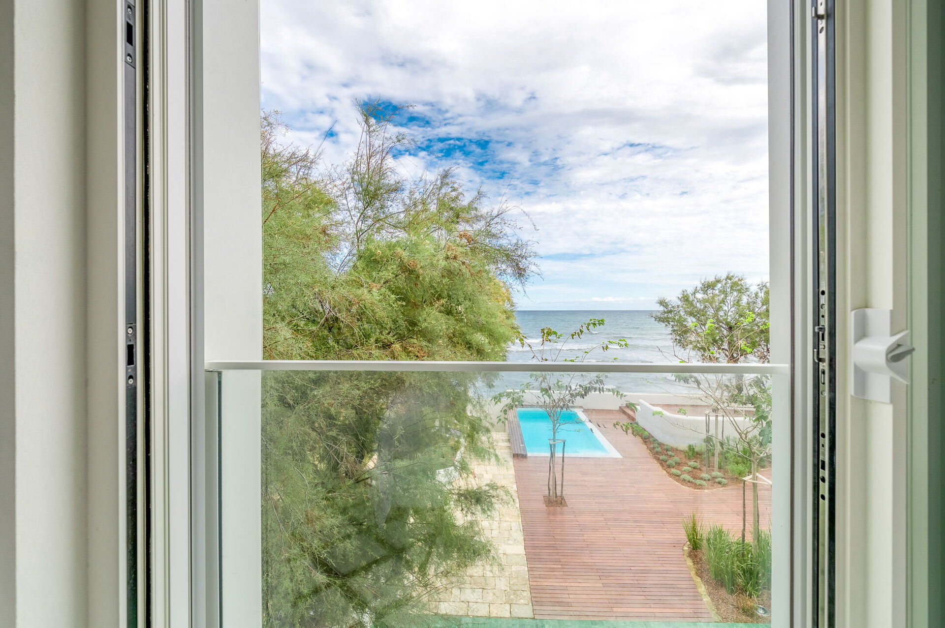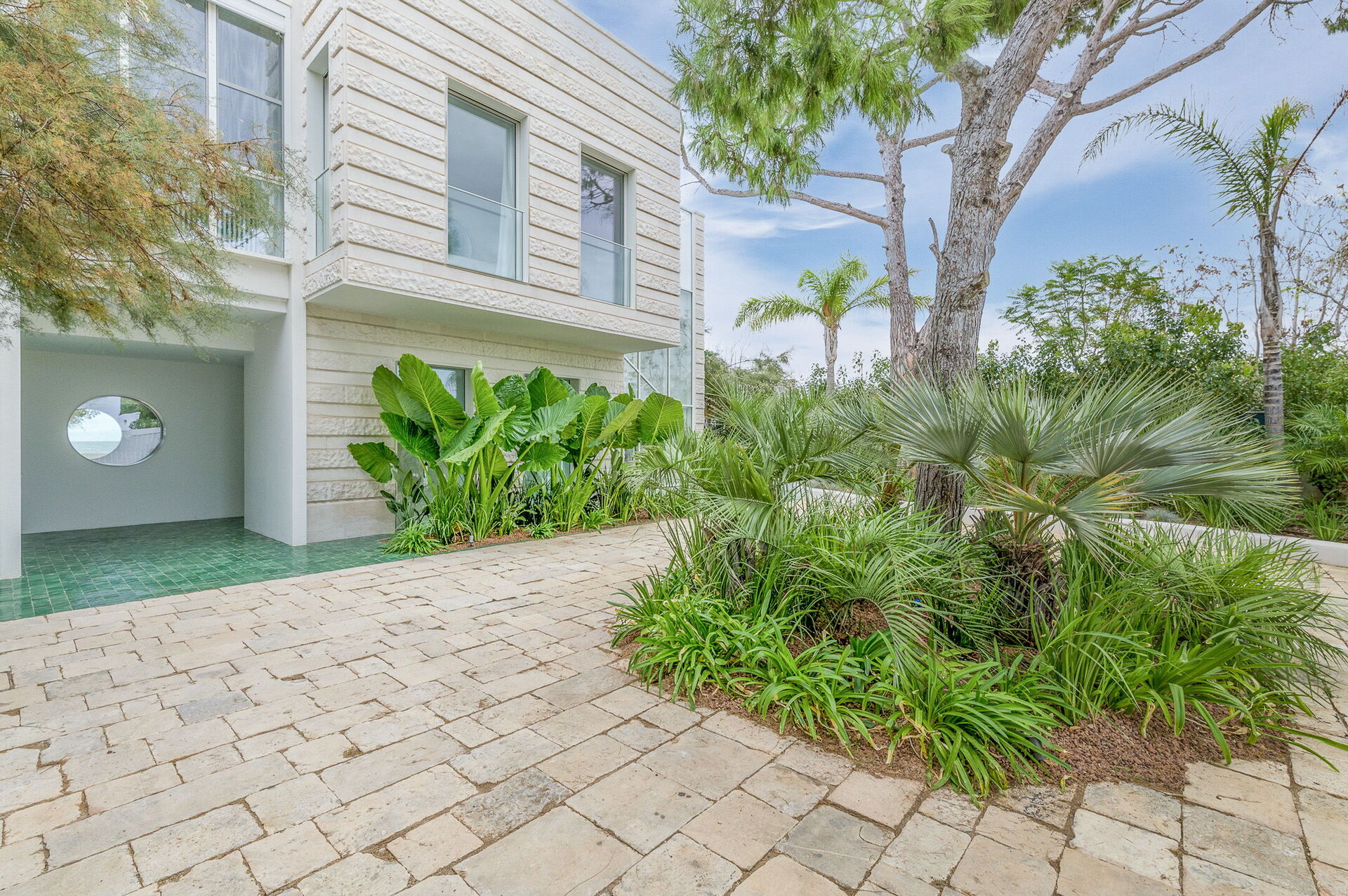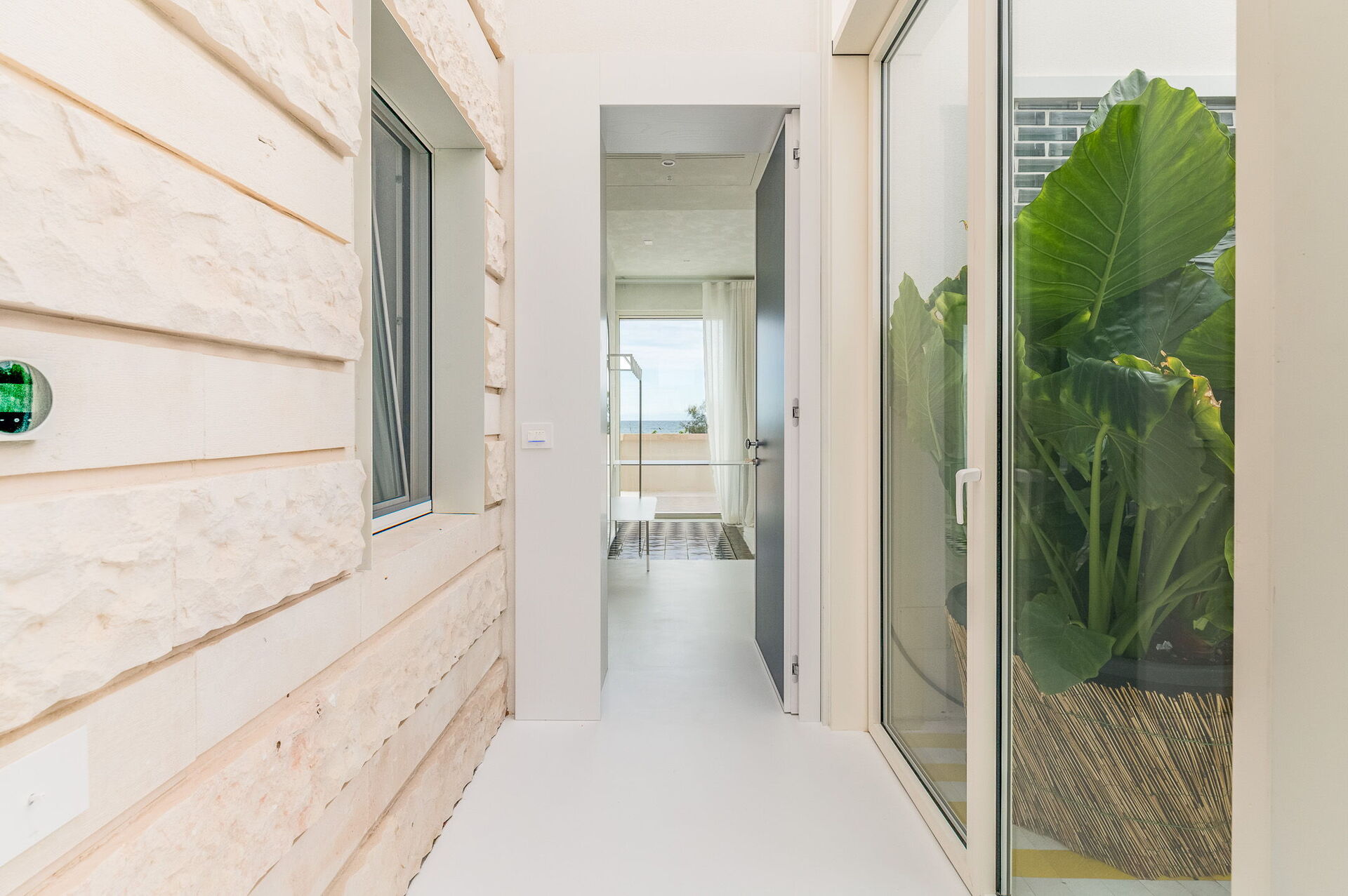 The villa has a living area on the ground floor and 5 bedrooms with private bathrooms on the first floor. The recently renovated property features contemporary furnishings and design elements that evoke the sea.