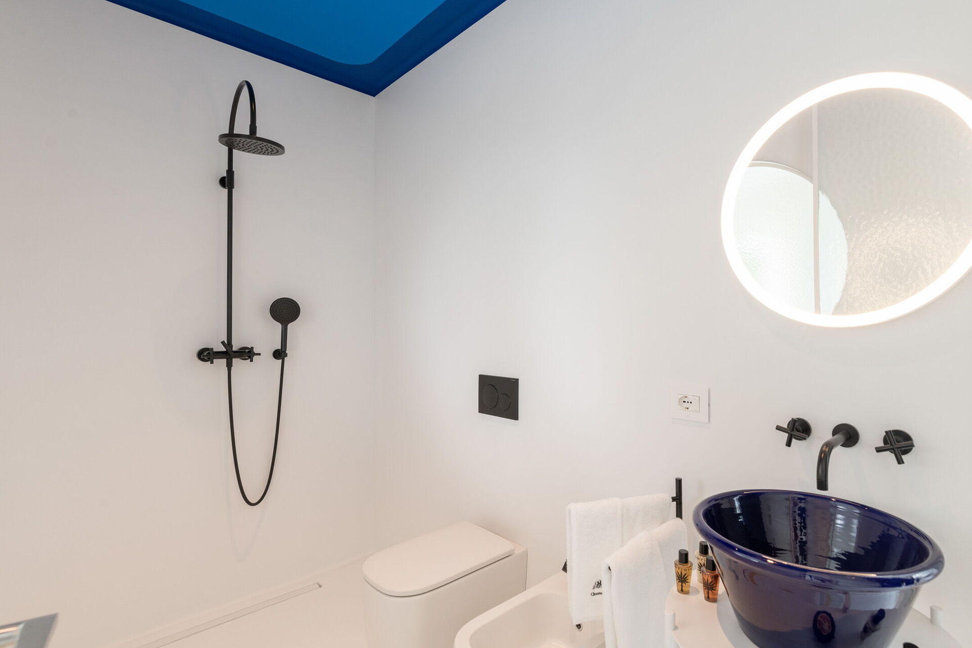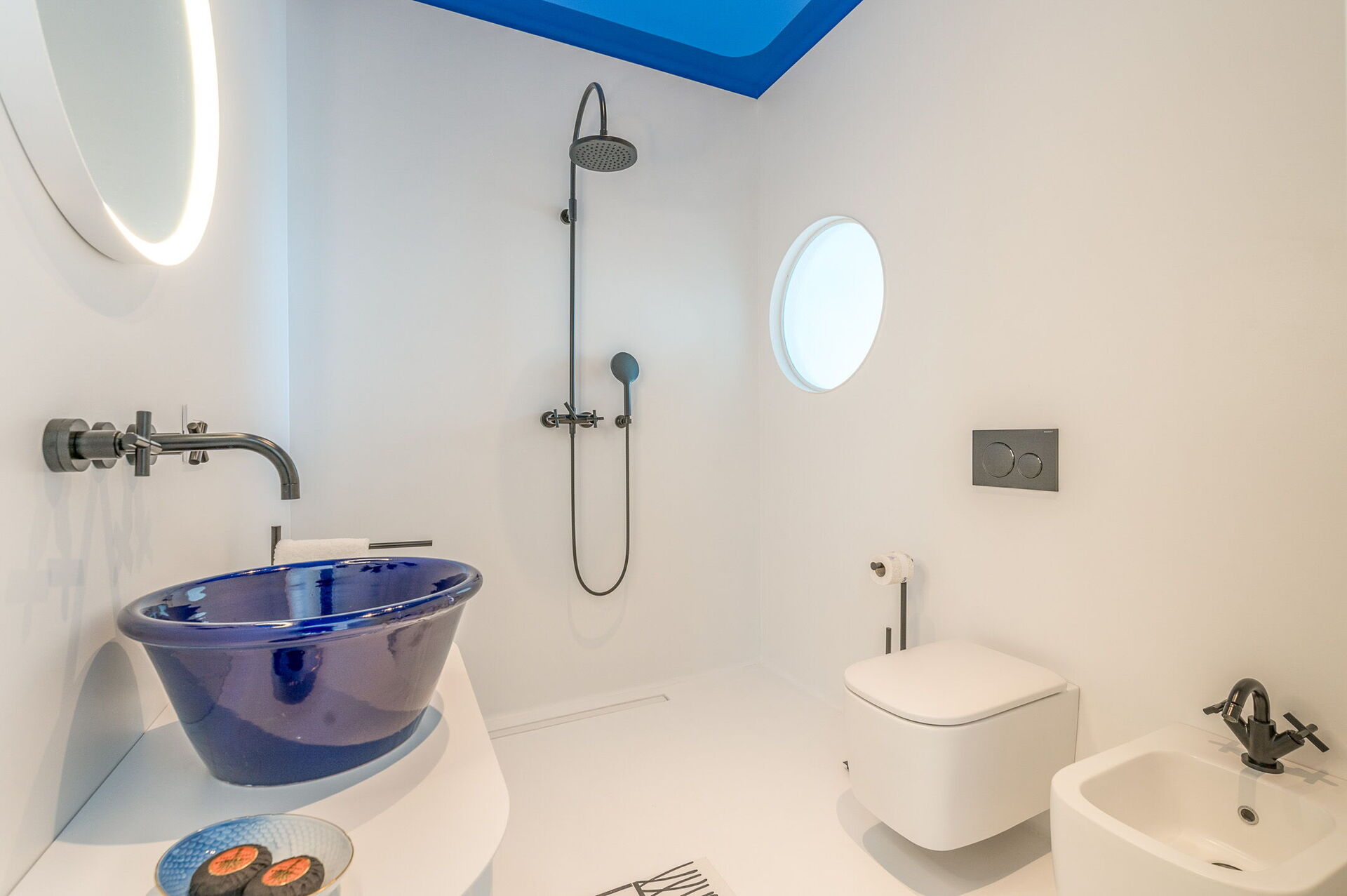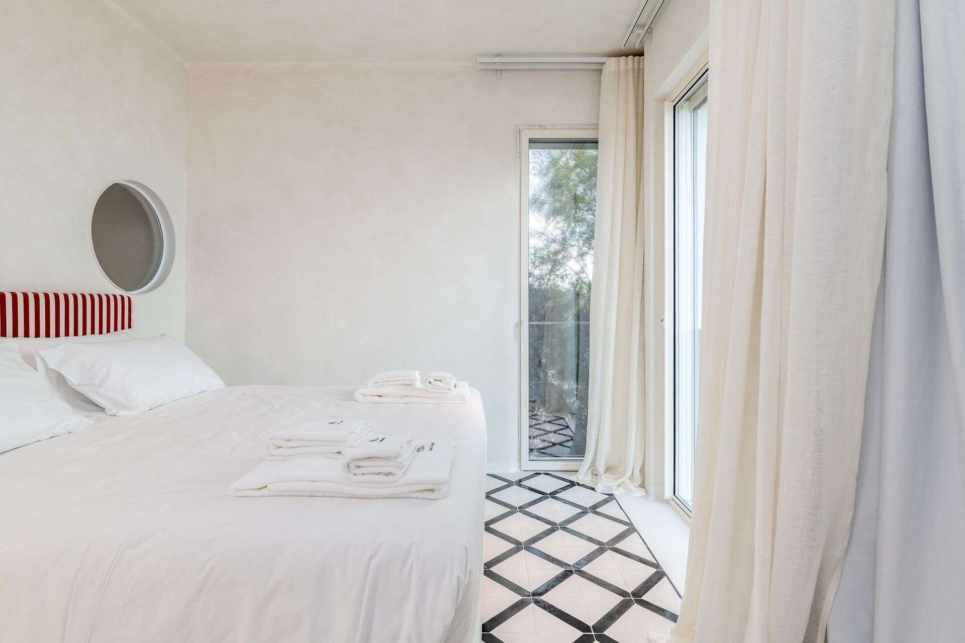 5 Bedroom + Ensuite Bathroom 5 (21.55 m2): double bed (length: 1.8m, width: 1.6m), toilet, bidet, basin, shower, hairdryer, television, WIFI internet, air conditioning, exit to the terrace. Balcony (15 m2)