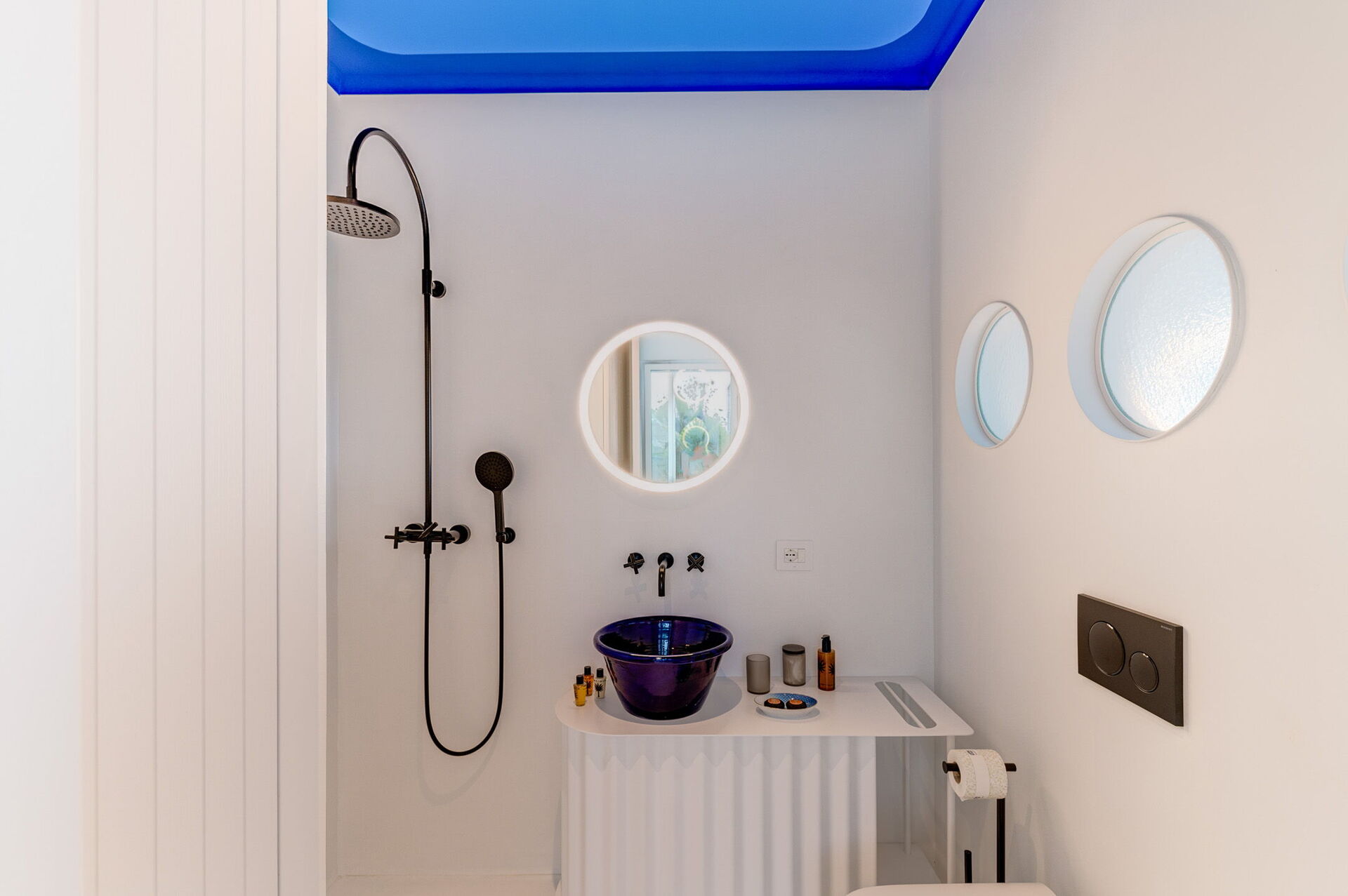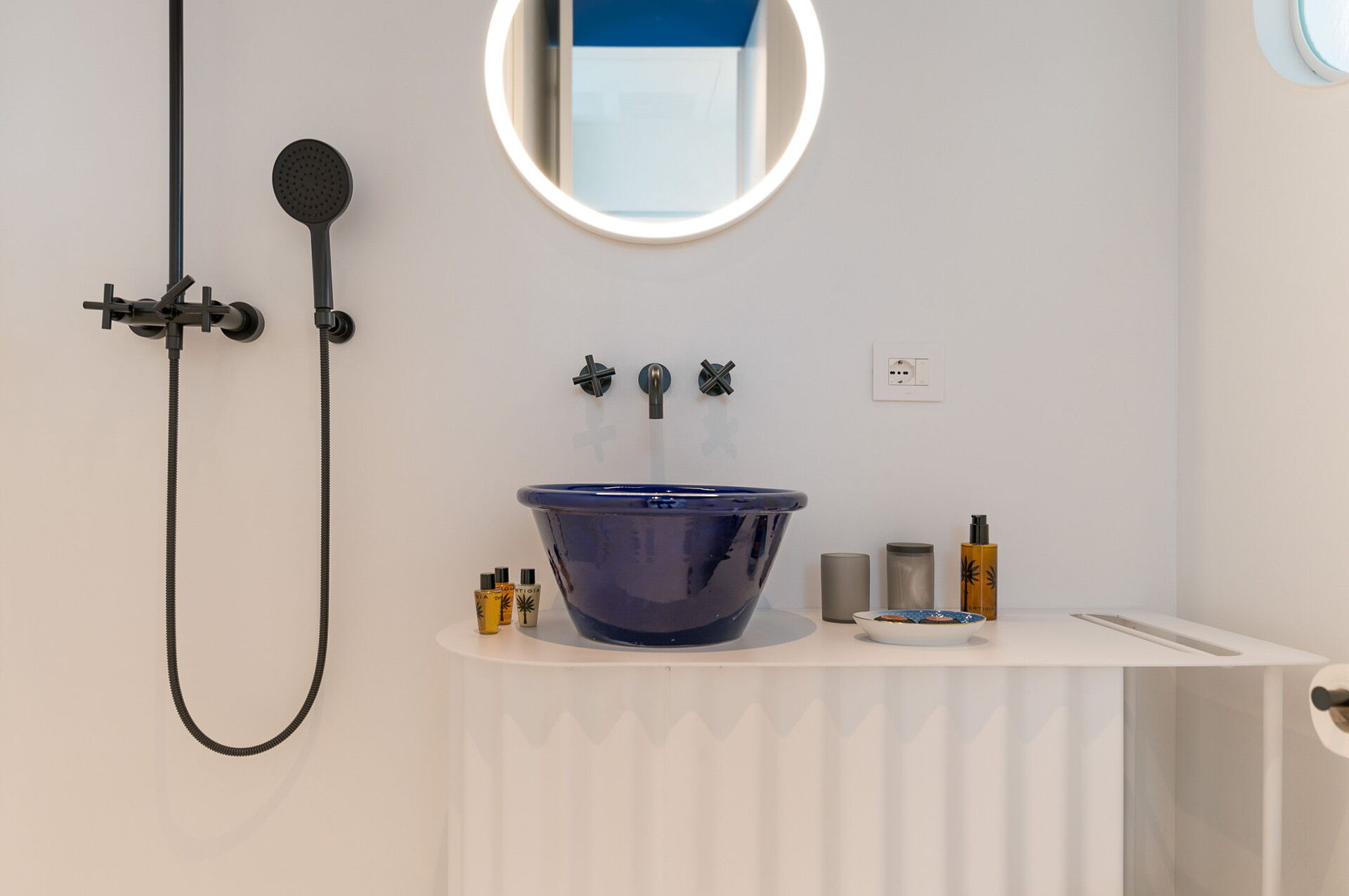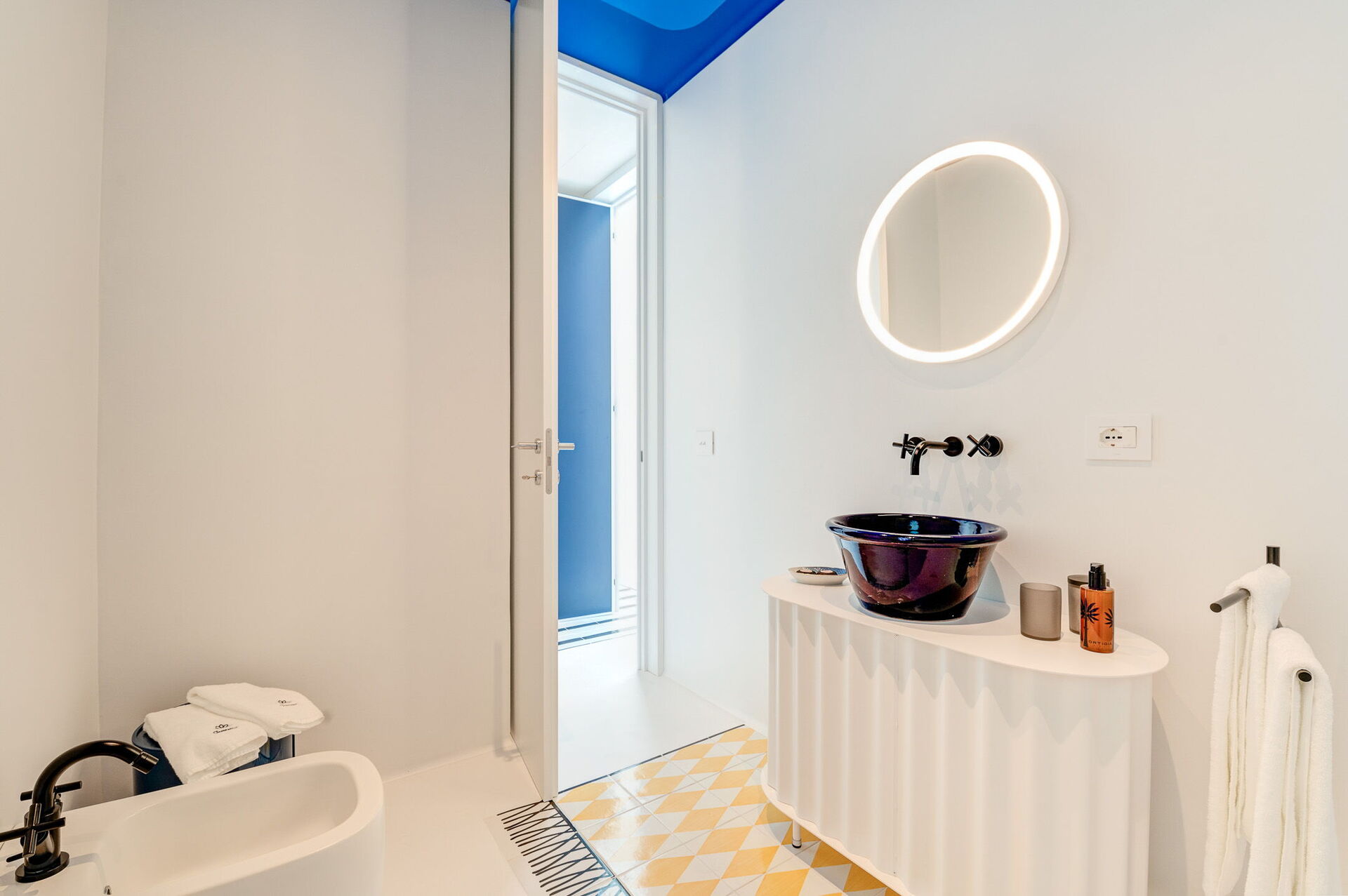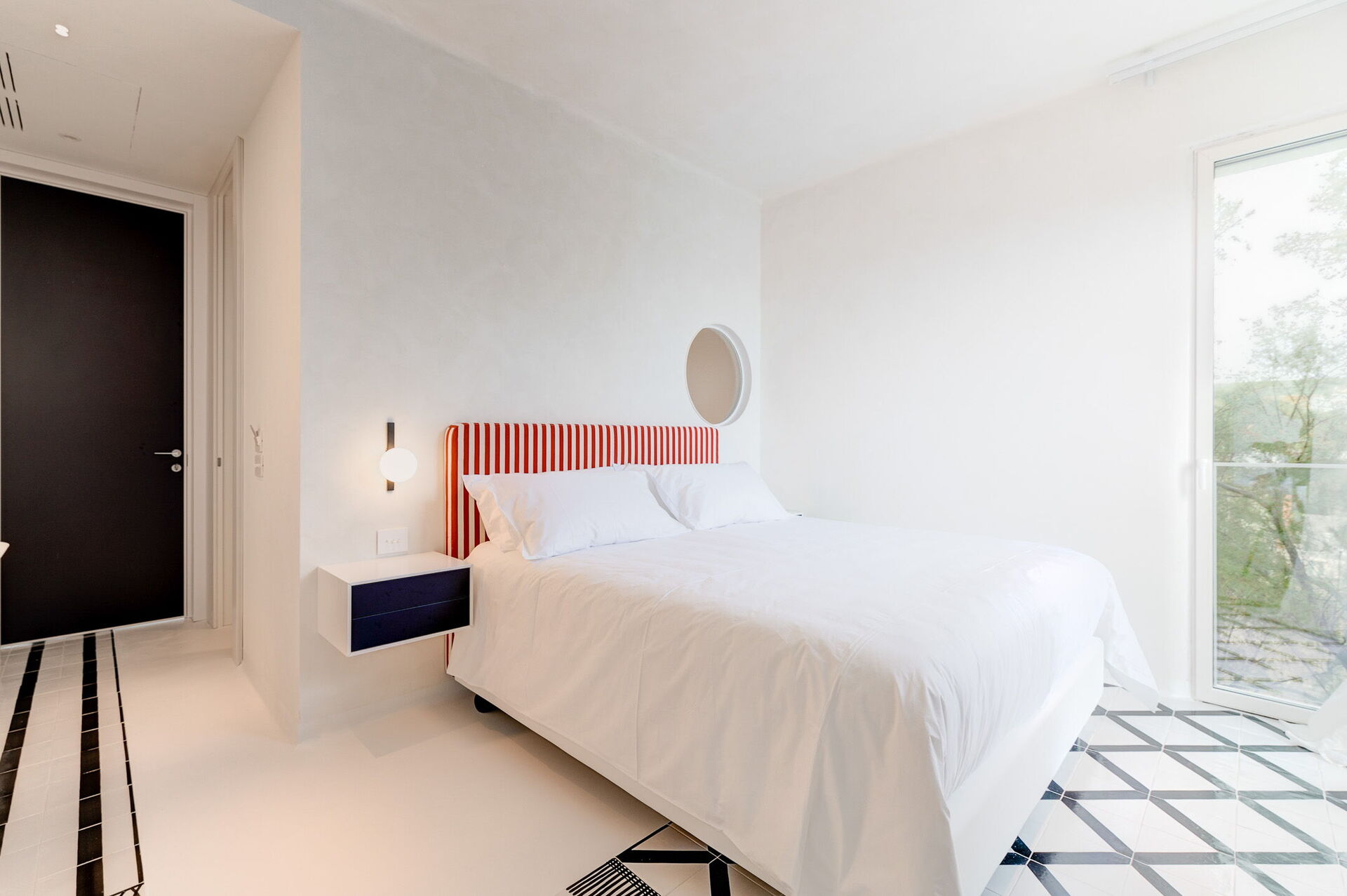 5 Bedroom + Ensuite Bathroom 5 (21.55 m2): double bed (length: 1.8m, width: 1.6m), toilet, bidet, basin, shower, hairdryer, television, WIFI internet, air conditioning, exit to the terrace. Balcony (15 m2)