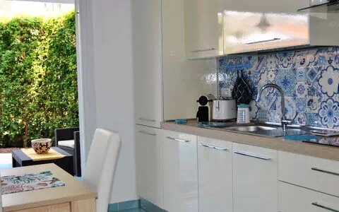 Moderne, komfortabelt rækkehus "Villa Mare Blu", renoveret, omgivet af træer. I bymidten fra Sperlonga, udmærket område: midt i centrum men stadig stille, i hjertet af byen, 250 m fra havet, 250 m fra stranden. Til medbenyttelse: park med planter og træer. Grill. Til alene benyttelse: terrasse. I huset: aircondition. Til afbenyttelse: cykler. Parkeringsplads (for 2 biler). E-ladestation. Supermarked, indkøbscenter, bar, busstoppested 300 m, sandstrand 250 m. Bemærk venligst: velegnet for familier.