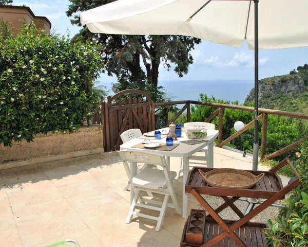 Ancoretta råder over en privat terrashave på 30 kvadratmeter, som udgør et roligt udendørsrum omgivet af det karakteristiske mediterrane landskab i Punta Cetarola-området. Adgang til ejendommen sker via en 2 kilometer lang bjergvej og 5 trin ved indgangen.