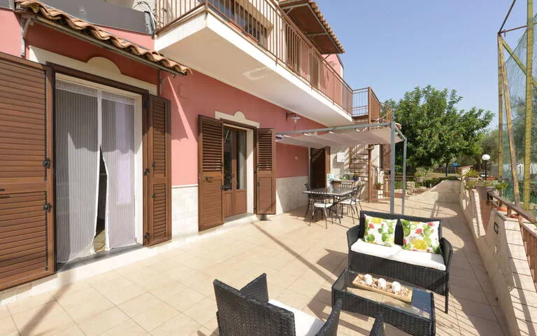 Villa "Le Pigne". 1.5 km fra bymidten af Solarino, 18 km fra centrum af Siracusa, rolig, solrige beliggenhed, 24 km fra havet, 24 km fra stranden. Til alene benyttelse: grund 1'500 m2, have træer, græsmark, pool (oppsted svømmebassin) (9 x 4 m, 120 cm dyb, Sæsonbestemt tilgængelighed: 01.Maj. - 30.Sep.). Udendørs brus, tennis, havemøbler, grill, Underholdning af poolen af ejeren/gartneren. Opvarme kun tilgængelig fra 01.Dec. - 31.Mar.. Parkeringsplads på grunden. Supermarked 1.5 km, restaurant 1.5 km, bar 1.5 km, busstoppested 2 km, sandstrand "Fontane Bianche" 23 km. Nærliggende attraktioner: Necropoli di Pantalica 28 km, Avola 30 km, Noto 46 km, Ispica 64 km, Catania 65 km, Caltagirone 83 km. Vandrestier Riserva Naturale Cavagrande di Cassibile 27 km, Riserva Naturale Faunistica Vendicari 45 km. Bemærk venligst: bil anbefales. 1. sal er lukket og anvendes ikke.