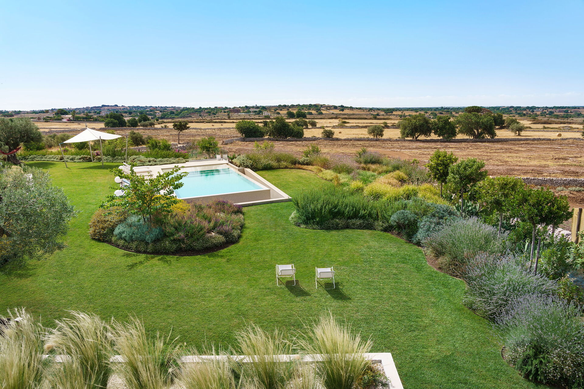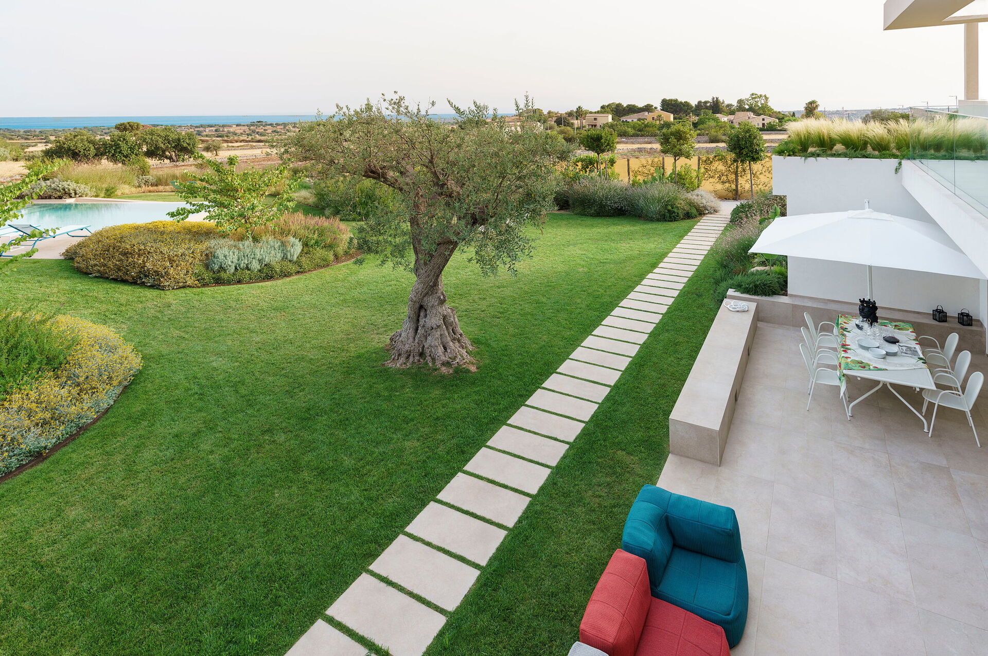 Den øverste etage af villaen huser en uafhængig bolig, beboet af ejerne i løbet af mellem- og lavsæsonen, uden at bruge haven og poolen, som er private for gæsterne alene.