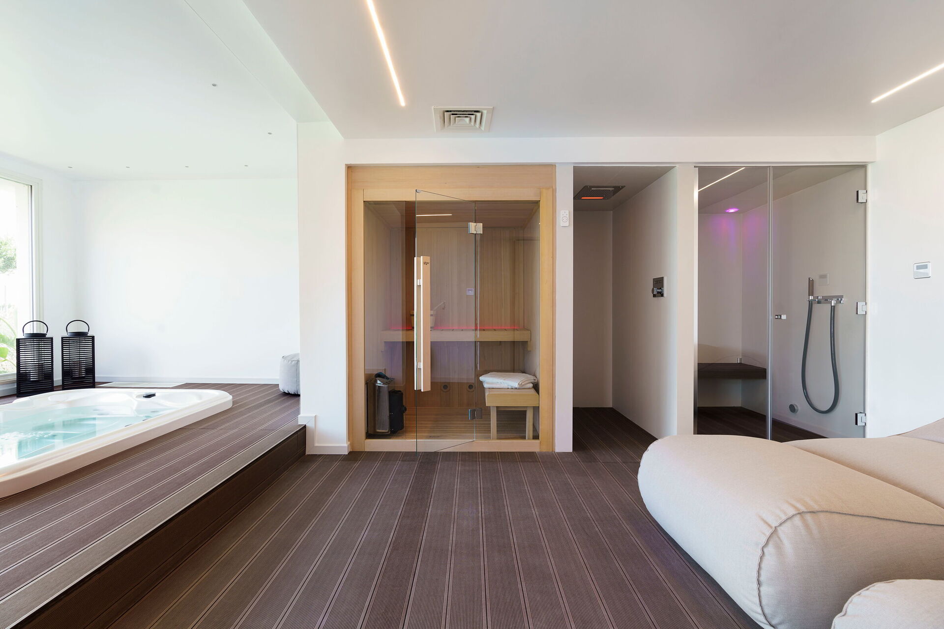 SPA: indendørs jacuzzi , bruser, sauna, to liggestole, WIFI internet, internet, dampbad.